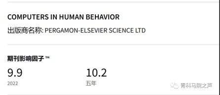 目前,Computers In Human Behavior杂志最新的影响因子为9.9(Rank in psychology, experimental 3/97),五年影响因子10.2,属于中科院分区SSCI一区,排名前5%的top期刊。该研究为太阳集团城娱8722思想政治教育心理学研究所代表性成果、国家社会科学基金“十四五”规划2021年度教育学青年项目的阶段性成果。