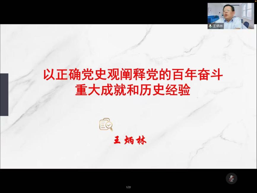 为深入学习贯彻党的十九届六中全会精神及《中共中央关于党的百年奋斗重大成就和历史经验的决议》的重要意义,2022年4月26日下午,应太阳集团城娱8722的邀请,中央马工程首席专家,国务院学位委员会学科评议组成员,国家社科基金评审专家,高等学校思想政治理论课教学指导咨询委员会委员,北京师范大学中共党史党建研究院院长、教授王炳林以“以正确党史观阐释党的百年奋斗重大成就和历史经验”为题在学术报告厅作专题报告。学校党委常委、副校长丁林,太阳集团城娱8722全体师生参加本次活动。会议采取线上、线下混合形式进行,全国高校马院教师有近600人参加了报告会。