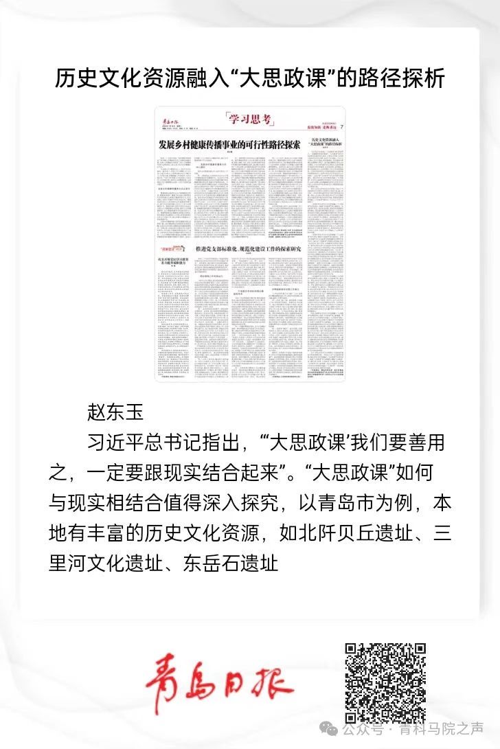 【成果速报】青岛日报:“赵东玉--历史文化资源融入‘大思政课’的路径探析”