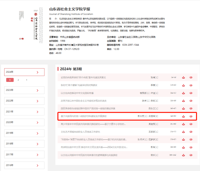 在统一战线学学科发展历程中,统一战线学二级学科的构建是一大转折点。2015 年,中央社会主义学院与山东大学合作共建统一战线学二级学科,拓宽了统一战线学研究的人才基础,使得统一战线学学科建设迈出了开创性的一步。 然而,不可否认的是,虽然有了平台支撑,但统一战线学本身作为一门科学的学科体系仍然处在建构之中,尤其是学术界和思想界还有一些人对统一战线学存有偏见,认为统一战线工作没有理论、不需要理论;也有一些人认为统一战线过于注重从政治性和政策性层面上展开研究,很难称得上科学性,认为统一战线作为一门学科缺少一般科学理论层面的指导等。