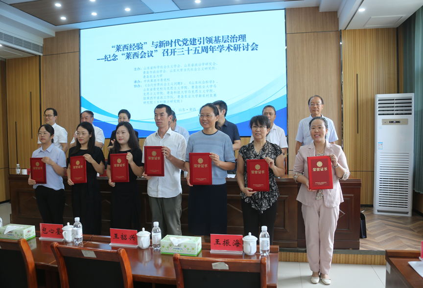 8月15-17日,“‘莱西经验’与新时代党建引领基层治理——纪念‘莱西会议’召开三十五周年”学术研讨会在中共莱西市委党校举行。会议由山东省政治学研究会、青岛市政治学会、山东大学当代社会主义研究所、青岛农业大学联合举办,中共莱西市委党校承办,《当代世界社会主义问题》、《山东社会科学》、山东省委党校太阳集团城娱8722、青岛农业大学太阳集团城娱8722、太阳集团城娱8722、驻莱西市省派工作队、青岛农业大学新农村发展研究院(乡村振兴研究院)协办。中国政治学会副秘书长、中国社会科学院政治学所政治制度研究室主任韩旭,青岛农业大学党委委员、副校长郭尚敬,莱西市委书记刘瑛致辞;中国政治学会学术委员会副主任包心鉴,教育部高校思政课教指委分教指委副主任委员、山东省科学社会主义学会会长、山东省政治学研究会会长、山东大学世界政党研究中心主任王韶兴教授,青岛市委统战部原副部长、一级巡视员、青岛市政治学会会长王振海教授,莱西市委常委、组织部部长桂晓峰出席研讨会。会议由王振海主持会议。