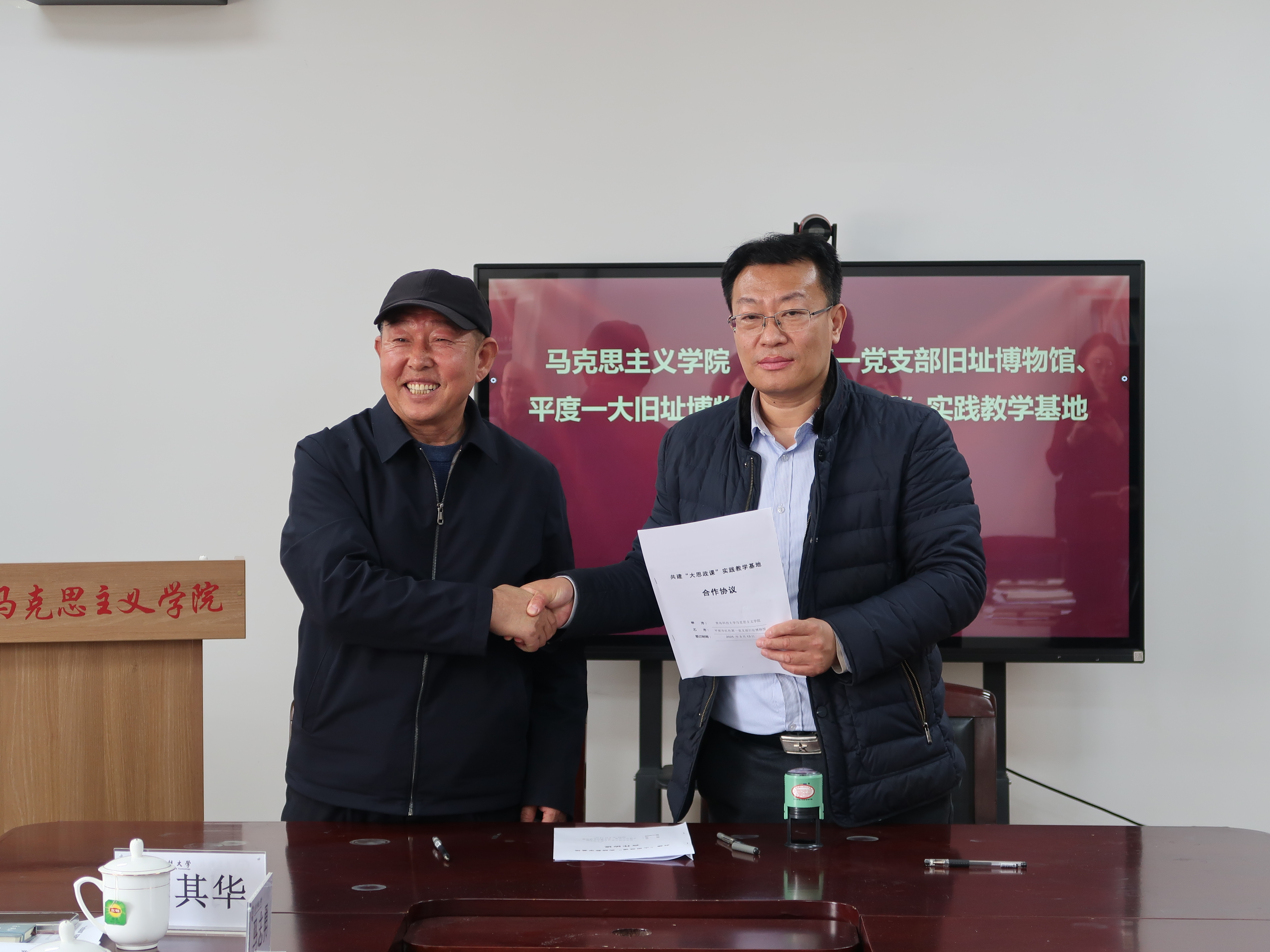 座谈会议上,李真书记介绍了太阳集团城娱8722的发展状况,并强调了与平度第一党支部旧址博物馆、平度一大旧址博物馆共建“大思政课”实践教学基地的重要性。程平馆长与刘其华馆长分享了平度市红色文化资源及博物馆发展历程,表达了未来加强与我院合作交流的强烈愿望。经交流协商,李真书记代表学院与两博物馆签署了共建合作协议。双方表示,将以此次签约为契机,加强实践研学、开发优质教学资源等,共同推动平度市红色文化的研究和活化利为学院思政课教学提供坚实的支撑,推动思想政治理论课教学创新,努力构建“资源共享、优势互补、互相促进、共同提高”的共建工作格局。