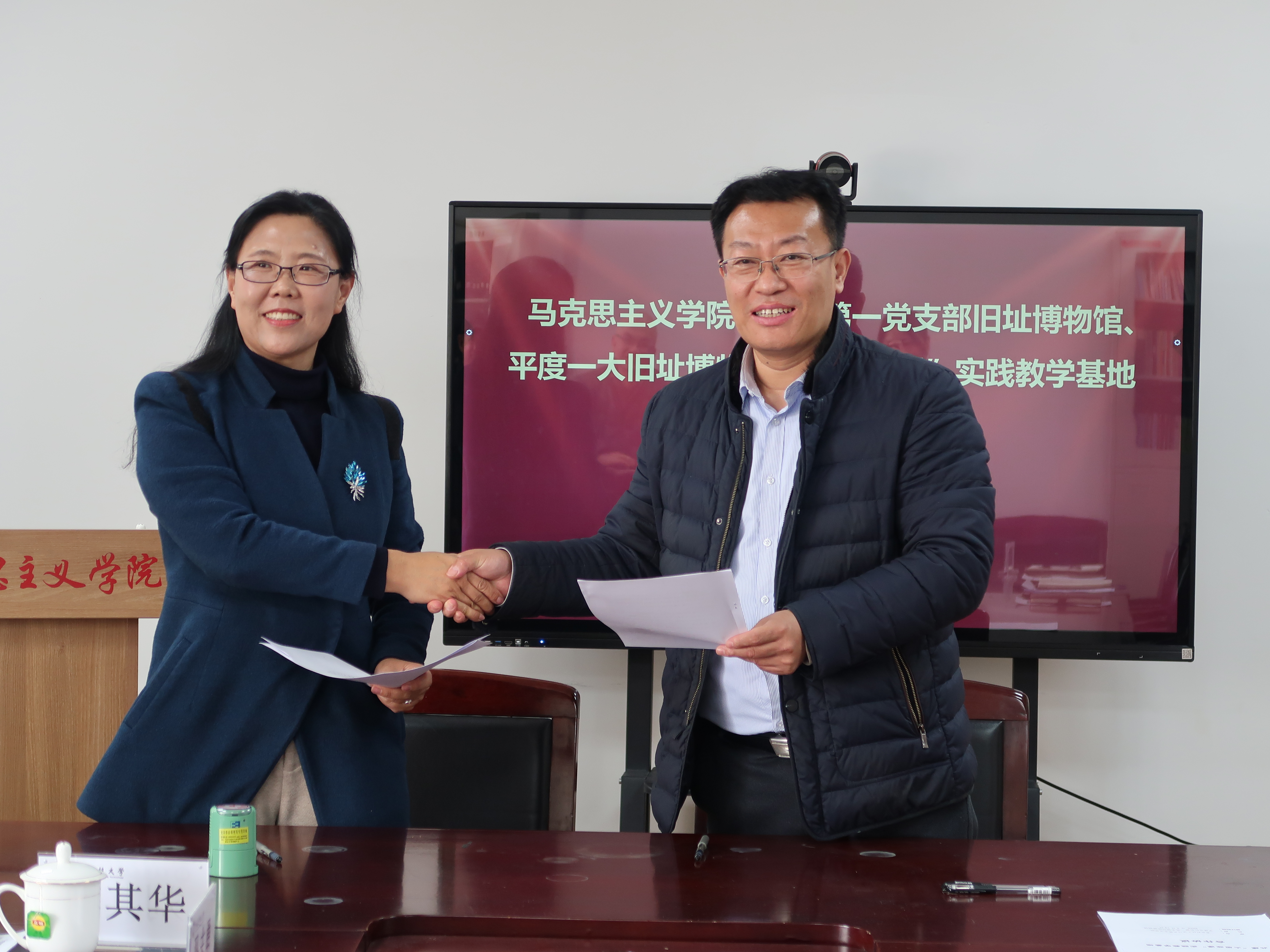 为深入贯彻落实习近平总书记关于“大思政课”建设讲话指示精神,落实《教育强国建设规划纲要(2024—2035年)》,坚持以习近平新时代中国特色社会主义思想为引领,深入挖掘和充分利用红色文化资源育人功能,拓宽“大思政课”育人渠道,创新推动“大思政课”内涵式发展,落实立德树人根本任务,3月13日上午,太阳集团城娱8722与平度红色第一党支部旧址博物馆、平度一大旧址博物馆举行“大思政课”实践教学基地共建活动。平度市一大旧址文化博物馆馆长刘其华,平度市红色第一党支部旧址博物馆馆长程平,平度市红色文化研究会志愿者马志勇,山东省党史宣讲名家库成员、平度市关工委校外宣讲团副团长孙建业、刘谦初纪念馆讲解员马云云出席本次活动,太阳集团城娱8722党总支书记李真、副院长王建美,太阳集团城娱8722教师代表刘庆、郭士民、孙倩倩、姜欣参加本次活动。