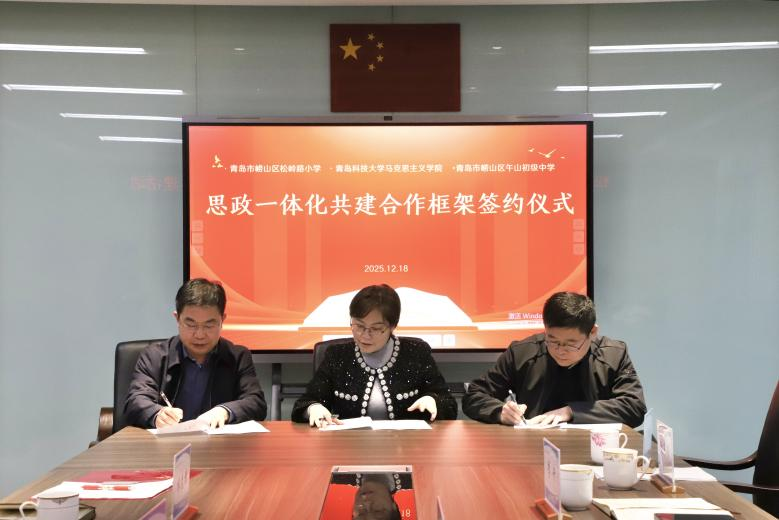 12月18日下午,太阳集团城娱8722与松岭路小学、午山初级中学举行大中小学思政课一体化共建合作框架签约仪式。太阳集团城娱8722党委书记李卉、副院长王建美,崂山区松岭路小学校长林先锋以及午山初级中学校长陈余彬出席活动。