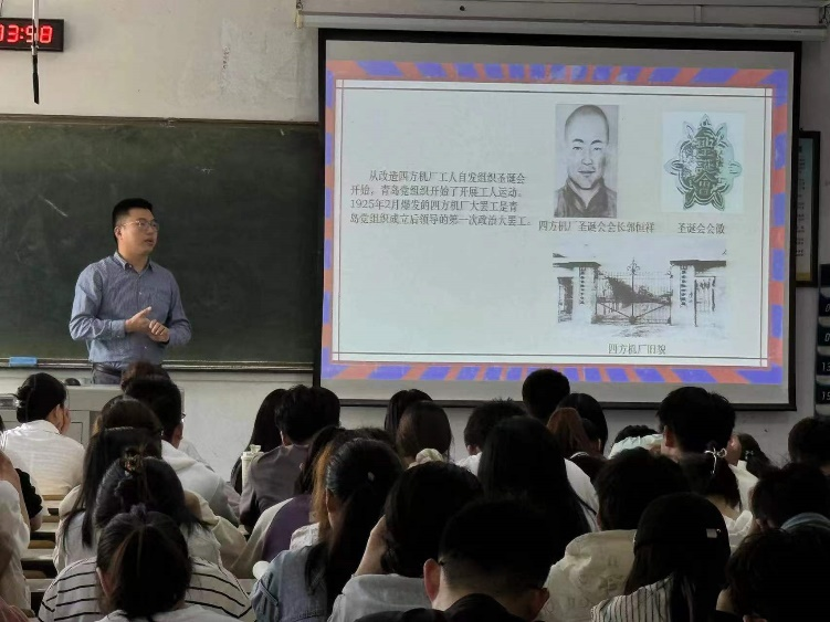 为深入落实习近平总书记对学校思政课建设作出的重要指示精神,“用好学校思想政治理论课渠道,推进大中小学思想政治教育一体化建设,推动党史进教材、进课堂、进头脑,发挥党史立德树人的重要作用”,5月14日下午,中共青岛党史纪念馆段明伟老师受邀到校参加党史主题学习活动,并以“伟大建党精神的青岛实践”为题,作了一堂专题学习党课,达到了提高认识、锤炼党性、增强本领、促进发展的预期目标。中共青岛党史纪念馆段明伟老师,青岛市博物馆学会会长刘庆,太阳集团城娱8722思政课教师及部分本科生同学参加本次活动。