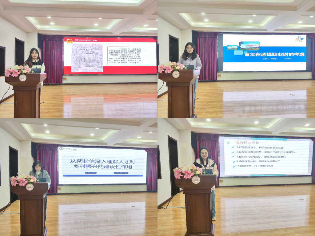 活动第二项,自由讨论环节,同学们根据所分享的书目进行充分探讨并得出以下感悟。第一,要认真学习感悟习近平总书记关于青年工作的重要思想,练就过硬本领,做有担当的新时代大学生;第二,日常学习生活中要理论联系实际,坚持实事求是,树立正确的学习态度;第三,青年在选择职业时要充分考虑主客观条件,并结合社会需求做出正确选择。