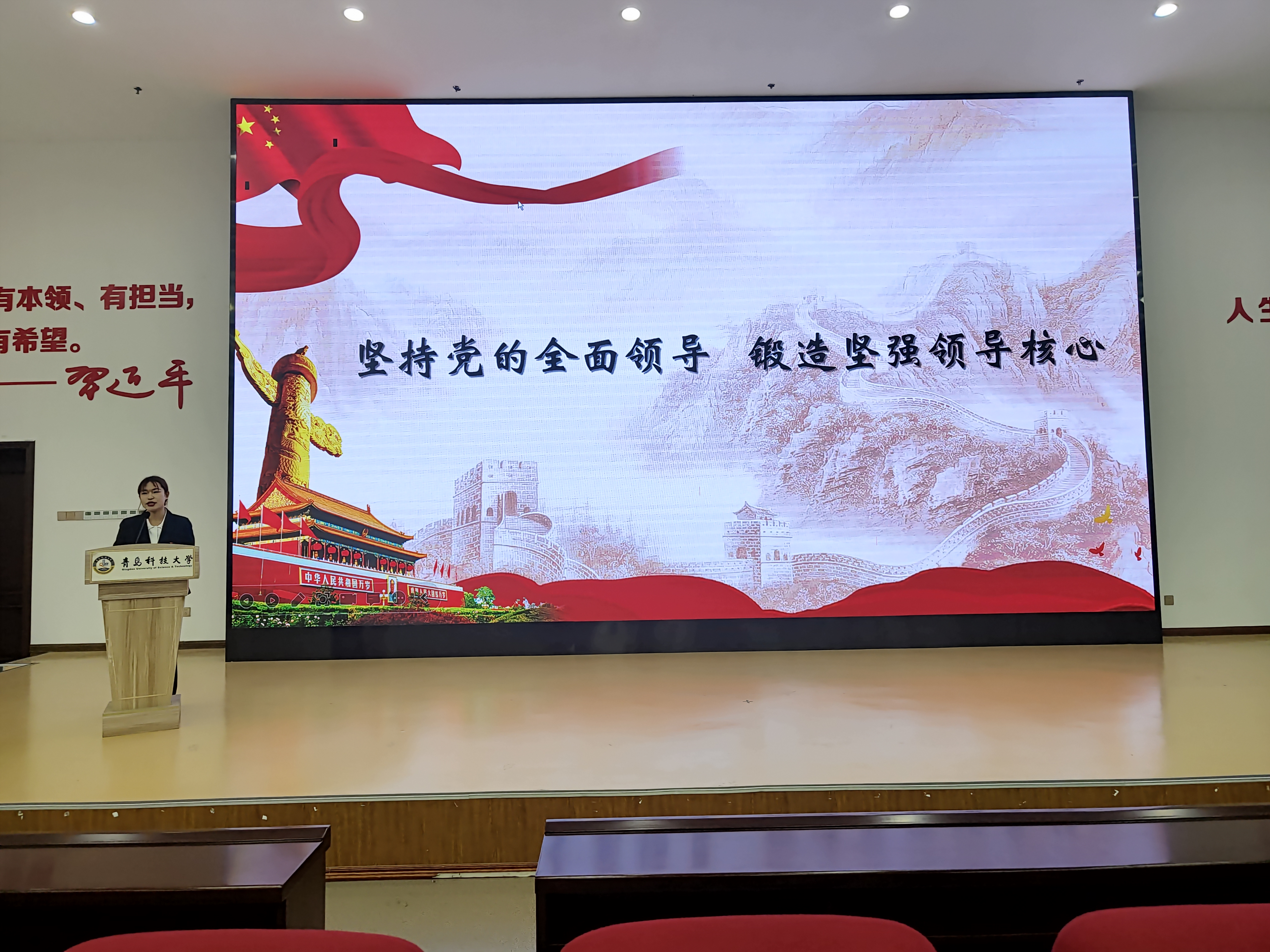 贾梦双以“坚持党的全面领导,锻造坚强领导核心”为主题,以中国共产党的领导是中国特色社会主义最本质的特征和坚决维护习近平总书记党中央的核心、全党的核心地位为主要内容,彰显出中国共产党人不负人民、担当天下的实践品格和“无我”境界。