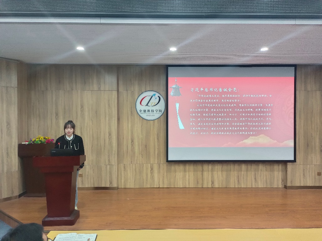 申文理以《文化自信自强——中华民族伟大复兴的精神力量》为主题,为大家阐述了文化自信自强的深远意蕴和推进文化自信自强的必要性。号召青年学生筑牢理想信念之基,弘扬中华优秀文化,增强志气、骨气、底气,用一言一行激励人鼓舞人,立言立行引领人教育人,以思辨力、创造力、行动力,为铸就社会主义文化新辉煌而努力奋斗!