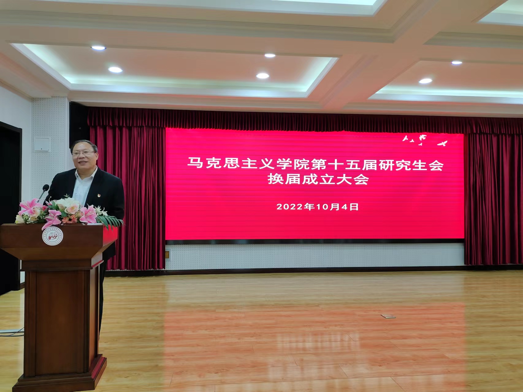 曹胜对第十五届研究生会全体成员表示了祝贺。曹胜指出,全体马院学生都是“关键少数”,都要发挥“关键少数”的作用,要有责任,有担当,要形成团队精神,勉励各部门要定位准确,贯彻落实好各项工作,做到让组织放心,让群众满意,把事情干好,为马院的发展贡献自己的一份力量。