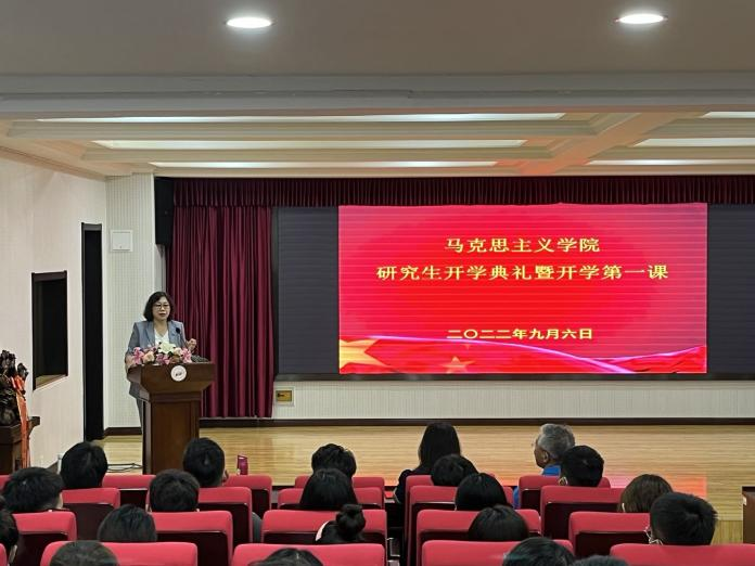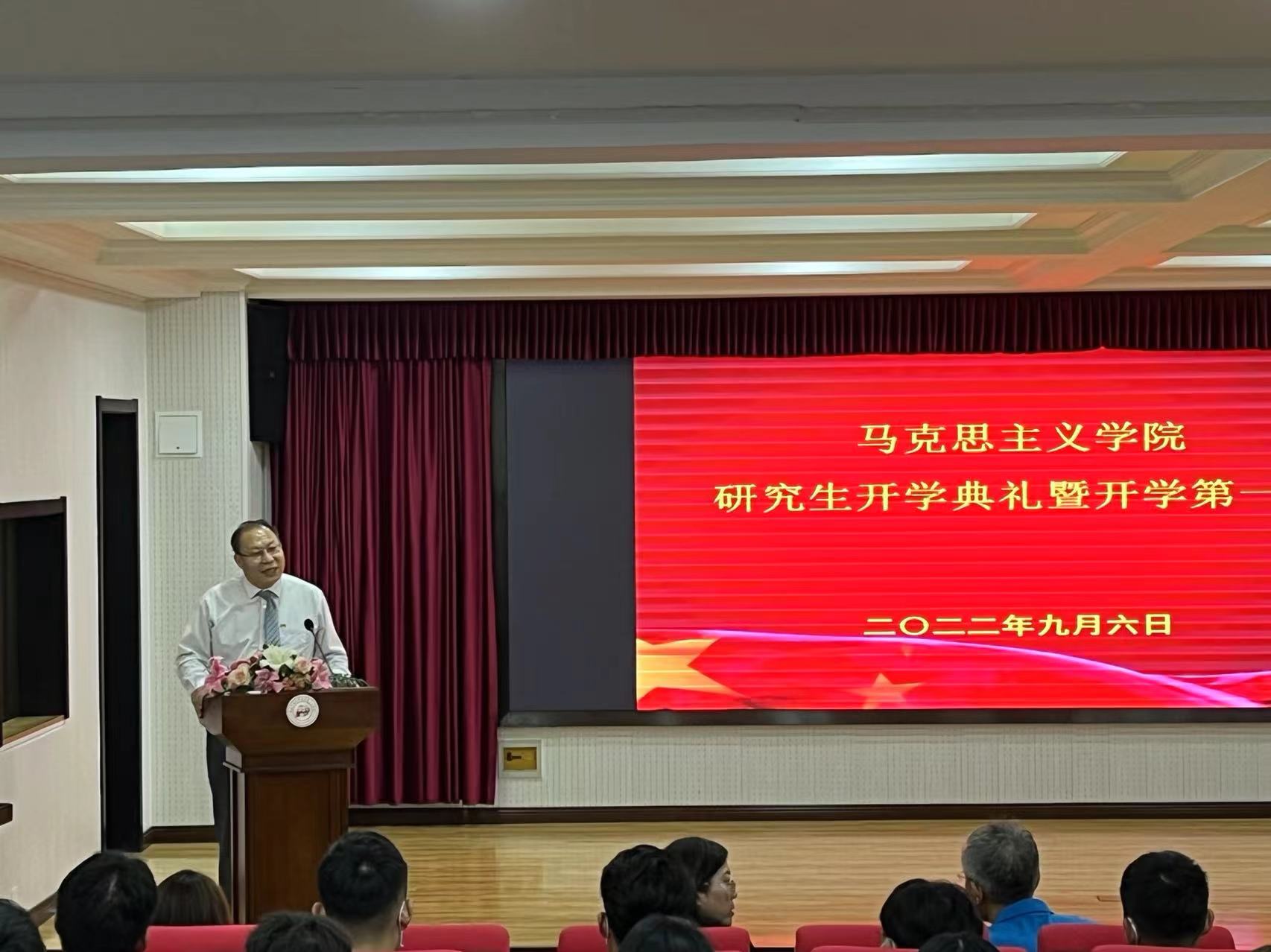 曹胜对2022级新同学们的到来表示热烈祝贺,并对其寄予了深厚期望。他表示,作为马院学子,要牢固树立在马信马、在马言马的理念,真正融入太阳集团城娱8722这个大集体,全心全力为马院做出贡献,做马克思主义理论学科坚定的信仰者、践行者、研究者。同时,曹院长还介绍了学院的学科专业建设情况等相关内容。