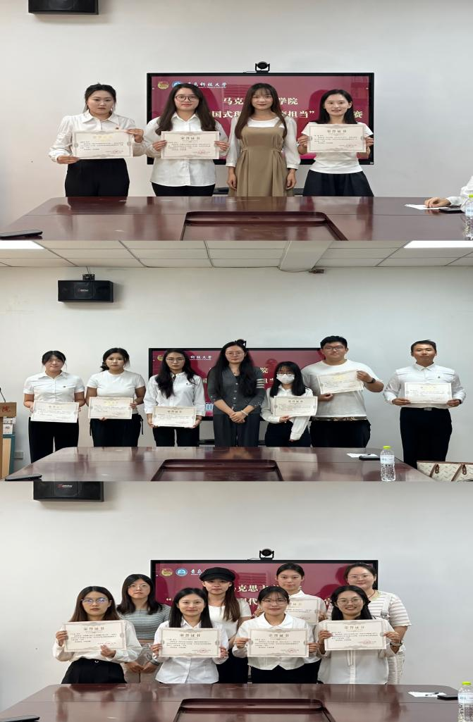 比赛结束后,李文睿与姜欣对大家的表现给予了肯定,同时也强调需进一步精进宣讲内容,以期达到更佳效果。本次比赛评选出一等奖3名,二等奖7名,三等奖11名。各位评委老师分别为获奖者颁发荣誉证书并合影留念。