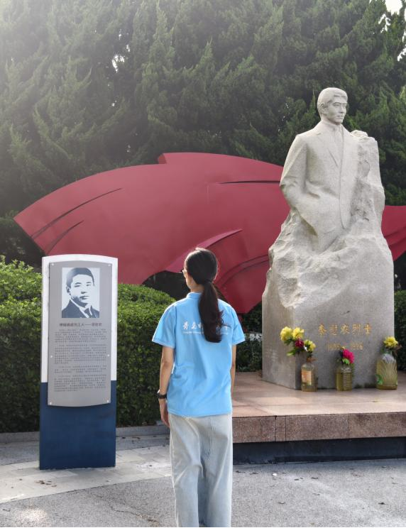 团队成员王硕走进李慰农纪念公园,探访李慰农烈士留下的红色事迹,感知英雄精神。该公园内部以李慰农先生雕像为主要纪念形式,辅以李慰农先生在青岛活动及英勇就义的个人事迹,纪念李慰农先生为青岛工人运动的发展所做出的牺牲,以此勉励后人,不忘前世之师。
