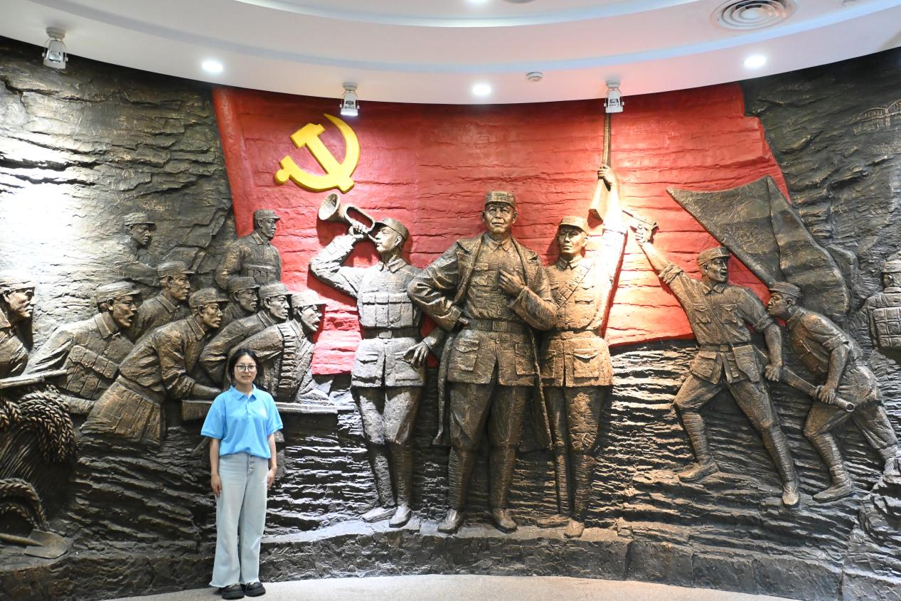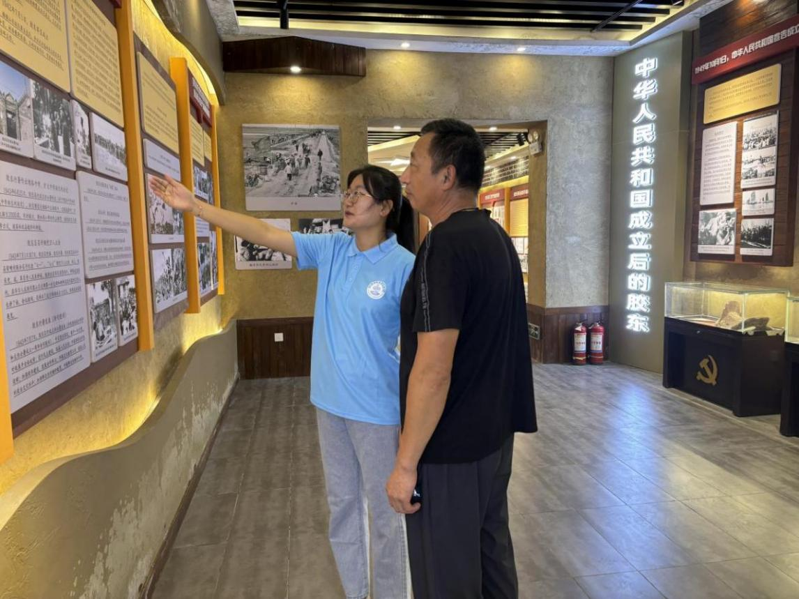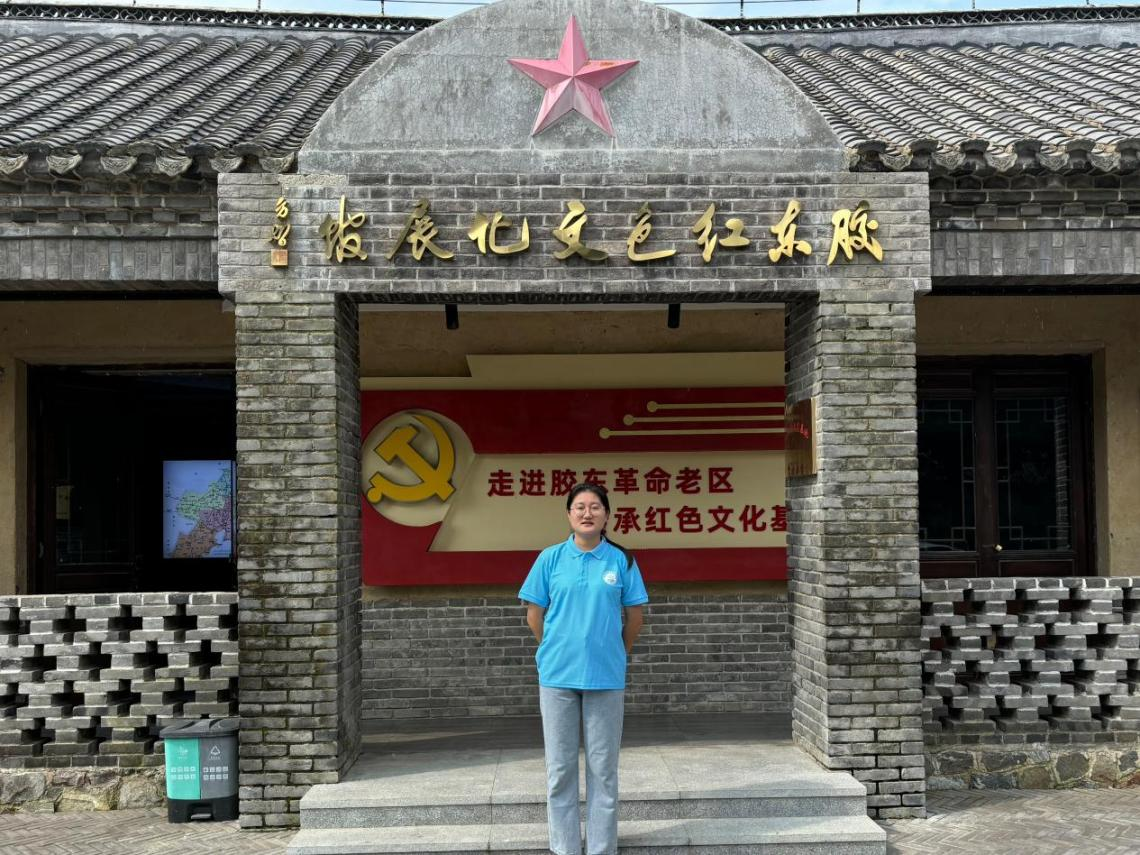 团队成员左文秀走进青岛市莱西市马连庄镇河崖村的河崖红色教育基地,馆内以雕塑、图文、遗物等形式展出了当地的红色故事,周边包括了胶东行署旧址、八路胡同、汪道涵旧址、胶东第一个新华书店等一大批红色旧址,是山东省委党史研究院公布的第四批山东省党史教育基地之一。
