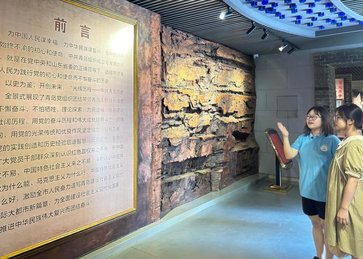团队成员孙梦瑶探访中共青岛党史纪念馆,历史上,中共青岛组织在此领导了四方机厂和日商纱厂工人大罢工,并推动了青岛历史上反帝爱国运动的第一次高潮,推动青岛革命的发展,在全省全国产生了重大影响。馆内展出了大量的珍贵历史图片、文献资料、实物,并利用投影、浮雕等形式介绍了中共青岛组织发展的历史,具有深刻的纪念意义。