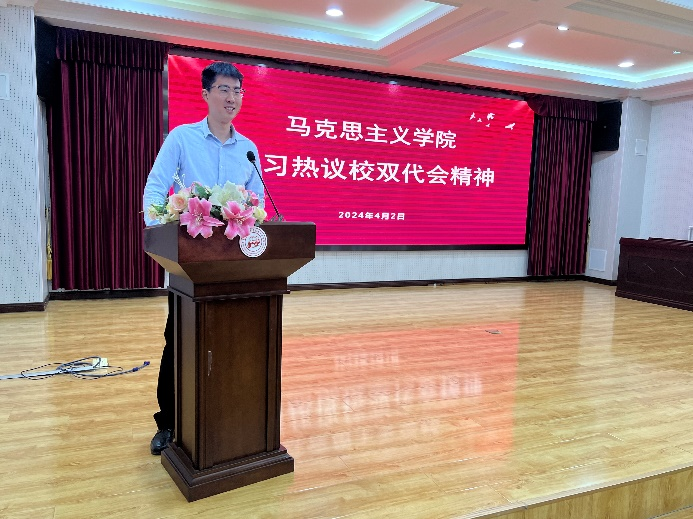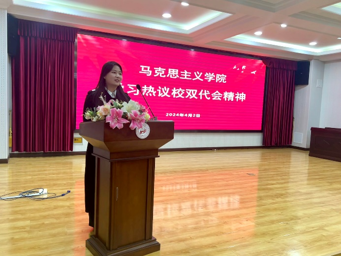 在此次双代会上丁校长向全校学生提出四点希望:一要坚定理想信念,做尊法崇德的科大青年;二要坚持大道正义,做光明诚信的科大青年;三坚守奋斗底色,做自找苦吃的科大青年;四要坚决担当作为,做奋勇争先的科大青年。在听取丁校长寄语后我深感责任重大,作为马院学生,我将不断提高自身的专业素养,把双代会精神转化为实际行动,将“小我”融入“大我”,争做有理想、敢担当、能吃苦、肯奋斗的新时代好青年。