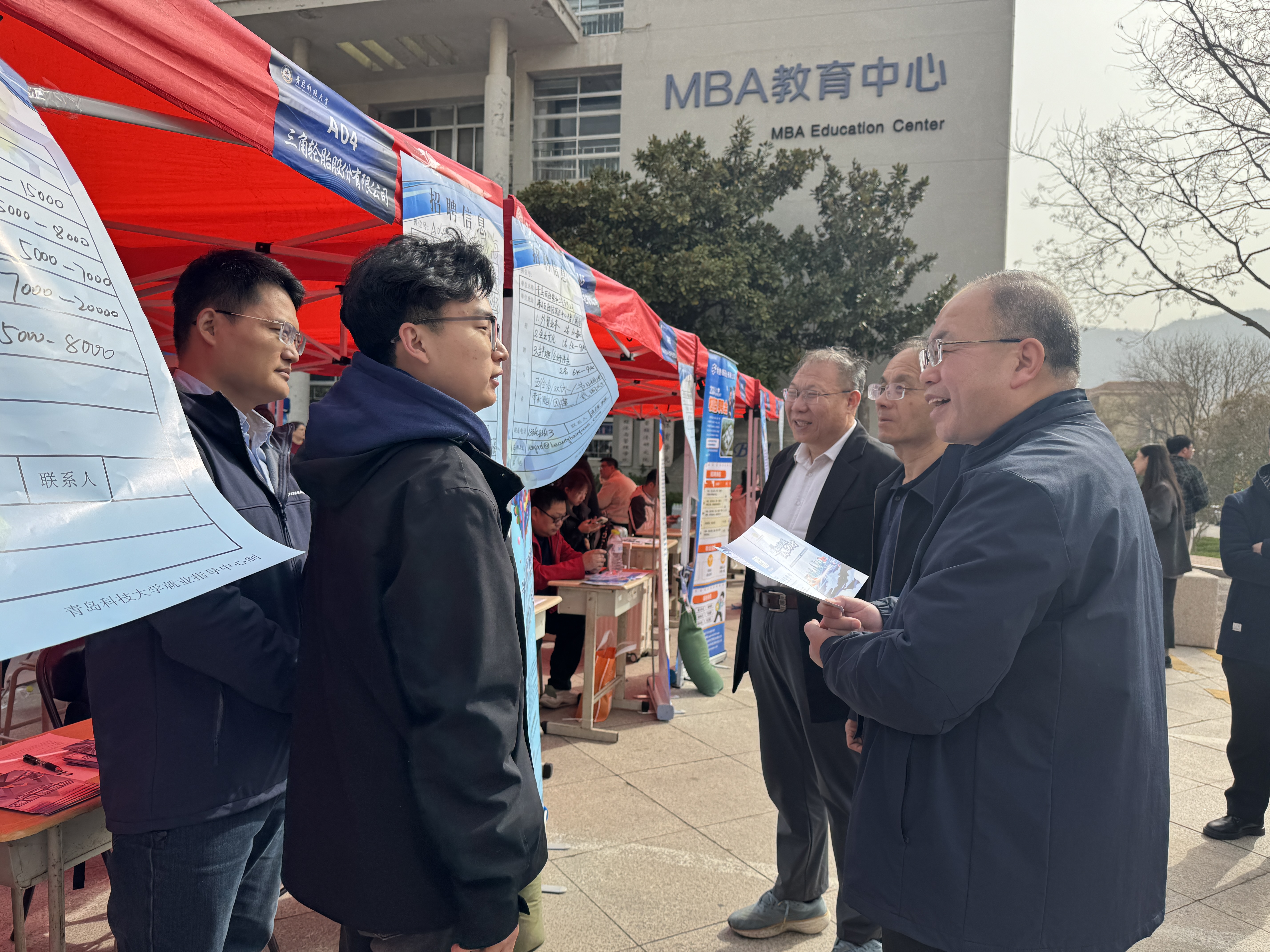 为全面落实党的二十届三中全会和全国教育大会精神,落实党中央、国务院稳就业保就业的决策部署,继续搭建用人单位和毕业生高效的“双向选择”平台,助力2025届毕业生高质量就业,3月25日上午,“经”彩启航,“法”挥无限,“马”到成功——经济与管理学院、法学院、太阳集团城娱8722毕业生专场双选会在太阳集团网站8722崂山校区弘毅广场顺利举办。学校党委常委、副校长丁林到招聘会现场调研指导。