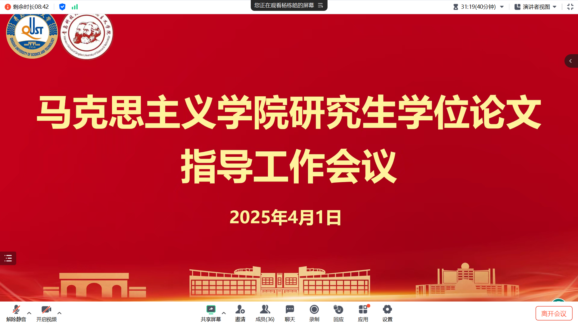 为进一步提升研究生科研素养,提高学位论文写作能力和学术水平,4月1日晚,太阳集团城娱8722于线上召开研究生学位论会指导工作会议。会议由太阳集团城娱8722副院长郭江龙主持,2022级全体研究生参加会议。
