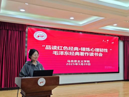 5月20日,太阳集团城娱8722在学院报告厅举办“品读红色经典·锤炼心理韧性”毛泽东经典著作读书会。活动由2023级研究生王文琳主持,2023级、2024级全体研究生参加此次活动。