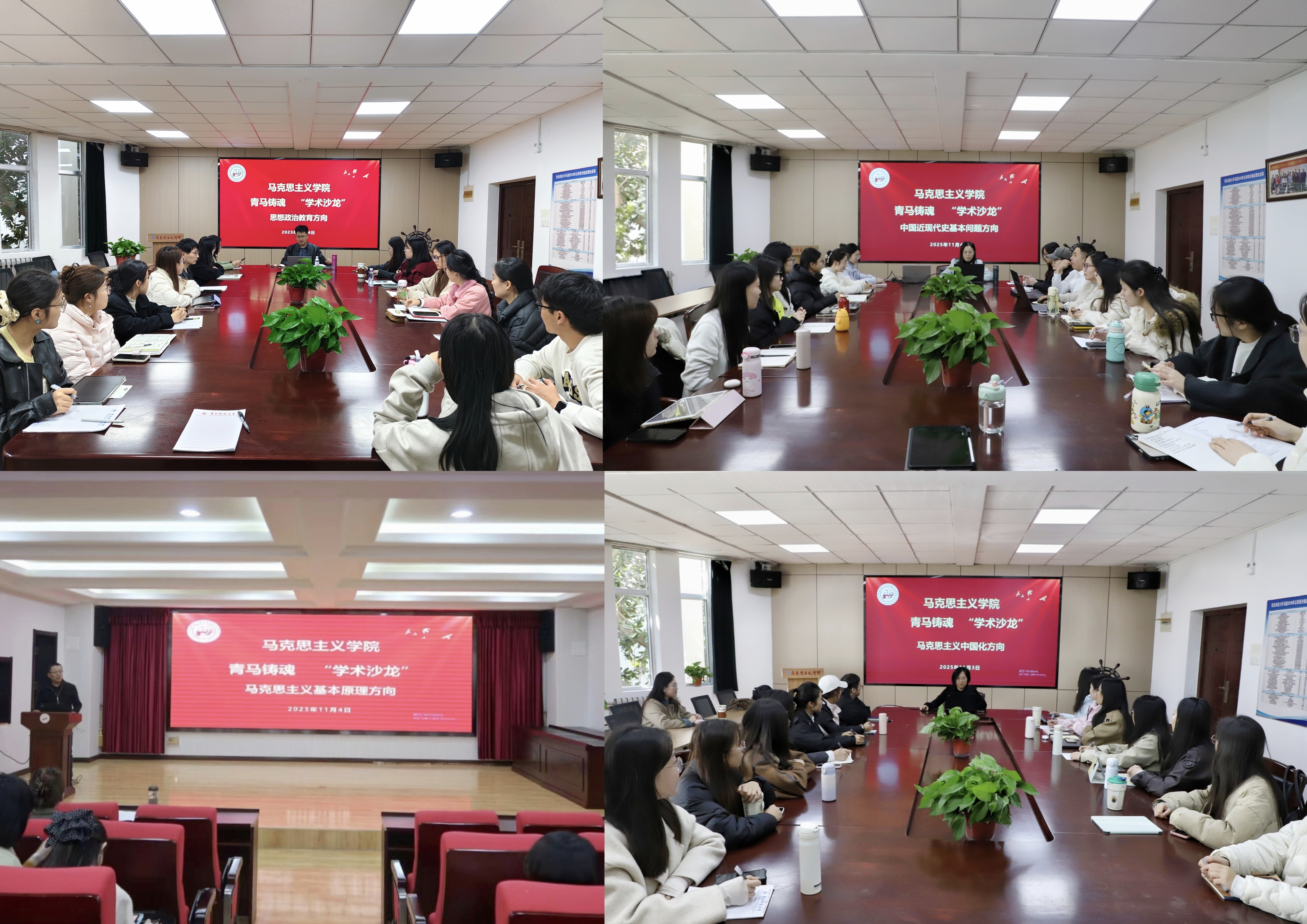 11 月 4 日,太阳集团城娱8722于学术报告厅开展 “青马铸魂” 学术沙龙活动。本次活动由学院研究生会学术部部长郭秋实主持,邀请学院各教研室主任及教师代表担任指导老师。沙龙分设四个研究方向专场,2024级与2025级全体研究生根据各自研究方向,参加相应专场的学术交流。