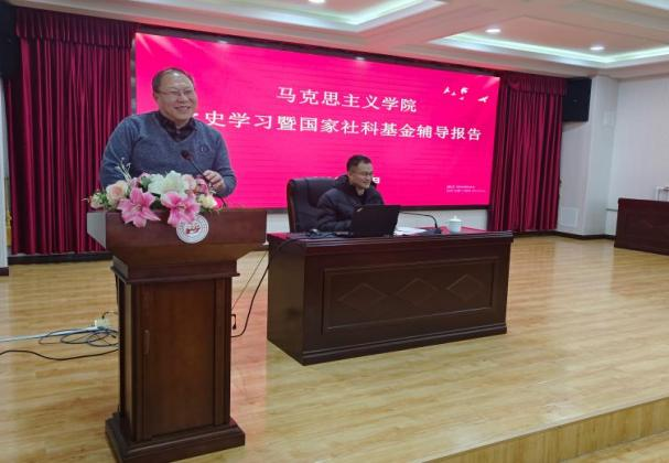 会上,马明冲教授结合自身研究的学术经验,马克思主义理论学科的发展形势。从学科、学术、学院的角度,对马克思主义理论课题的申报工作准备、申报材料撰写、申报成功的影响因素等方面展开充分论证。以自身对“善”的两层理解,鼓励大家要讲好理论、写好文章、做好人,善学、善思、善干,为马克思主义理论学科建设做贡献。