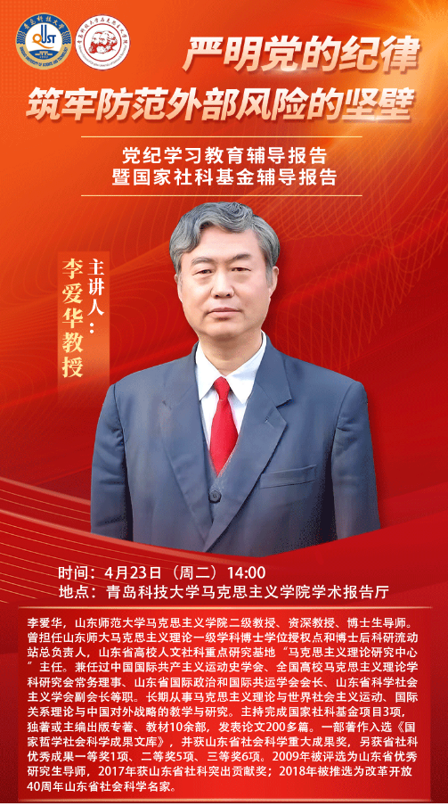 李爱华,山东师范大学太阳集团城娱8722二级教授、资深教授、博士生导师。曾担任山东师大马克思主义理论一级学科博士学位授权点和博士后科研流动站总负责人,山东省高校人文社科重点研究基地“马克思主义理论研究中心”主任。兼任过中国国际共产主义运动史学会、全国高校马克思主义理论学科研究会常务理事、山东省国际政治和国际共运学会会长、山东省科学社会主义学会副会长等职。长期从事马克思主义理论与世界社会主义运动、国际关系理论与中国对外战略的教学与研究。主持完成国家社科基金项目3项,独著或主编出版专著、教材10余部,发表论文200多篇。一部著作入选《国家哲学社会科学成果文库》,并获山东省社会科学重大成果奖,另获省社科优秀成果一等奖1项、二等奖5项、三等奖6项。2009年被评选为山东省优秀研究生导师,2017年获山东省社科突出贡献奖;2018年被推选为改革开放40周年山东省社会科学名家。