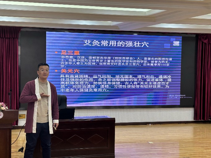 活动伊始,张凯医师从日常生活中的实际案例出发帮助教职工们了解艾灸的原理以及功效,接着为大家讲解了艾草的药理作用以及人体经络的相关知识,从人体经络出发讲解各个经络的保养穴位和保养时间,并为大家介绍了一些常见病的艾灸疗法。在场教师积极参与互动,现场气氛轻松而热烈。活动最后,张凯医师送给每位教师一根艾灸棒,希望老师们可以运用讲座上学习的灸法知识,在家中体验艾灸的乐趣。