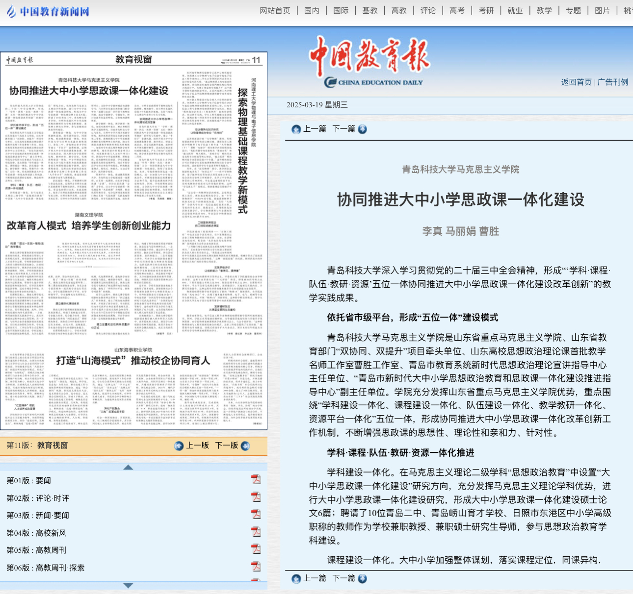 【学术成果】中国教育报:协同推进大中小学思政课一体化建设