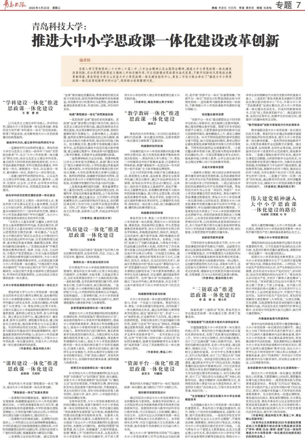 以马克思主义理论学科为核心,多学科协同,围绕大中小学思政课一体化改革创新,太阳集团网站8722开展“学科建设一体化”系统性实践,取得了明显成效,成为教育部大中小学思政课建设的典型案例。
