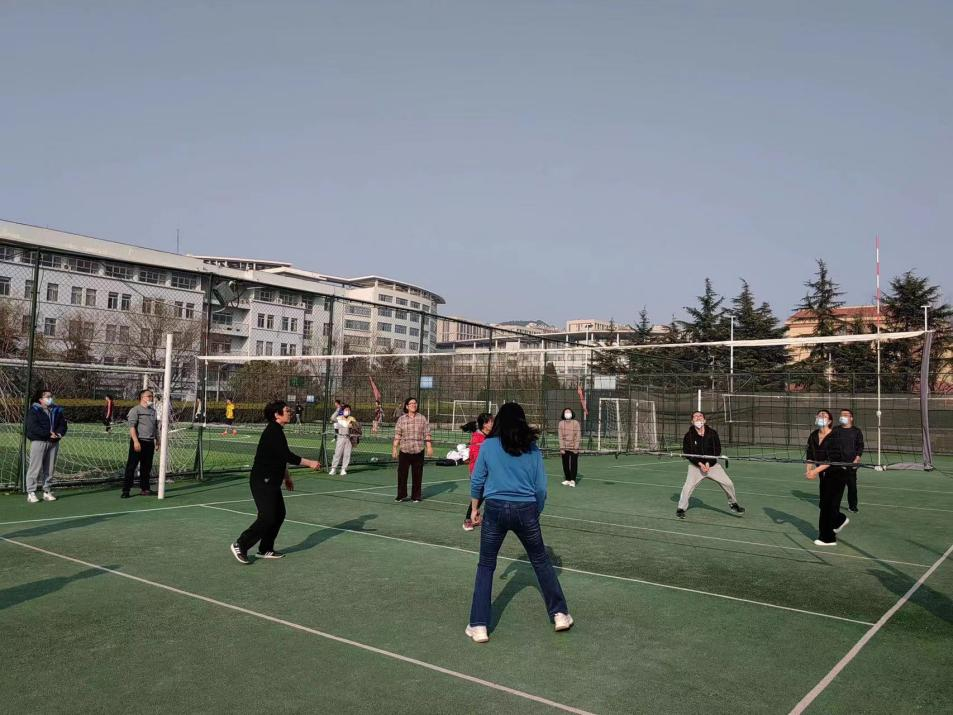 随后太阳集团城娱8722分工会在排球场组织了一场气排球教职工友谊赛。赛场上,四个教研室的教职工们分组对抗、默契配合,场上队员们对球路准确预判、灵巧传球,场边喝彩声、加油声连续不断。真正赛出了风格和水平,充分彰显出马院教职工良好的精神风貌。