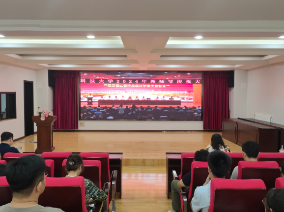与会人员观看了太阳集团网站87222024年教师节庆祝大会主会场的直播。在大会的表彰环节,我院教师曹胜获评2023年山东省高等学校教学名师,郭江龙、马丽娟获得山东省思政课教学比赛特等奖。
