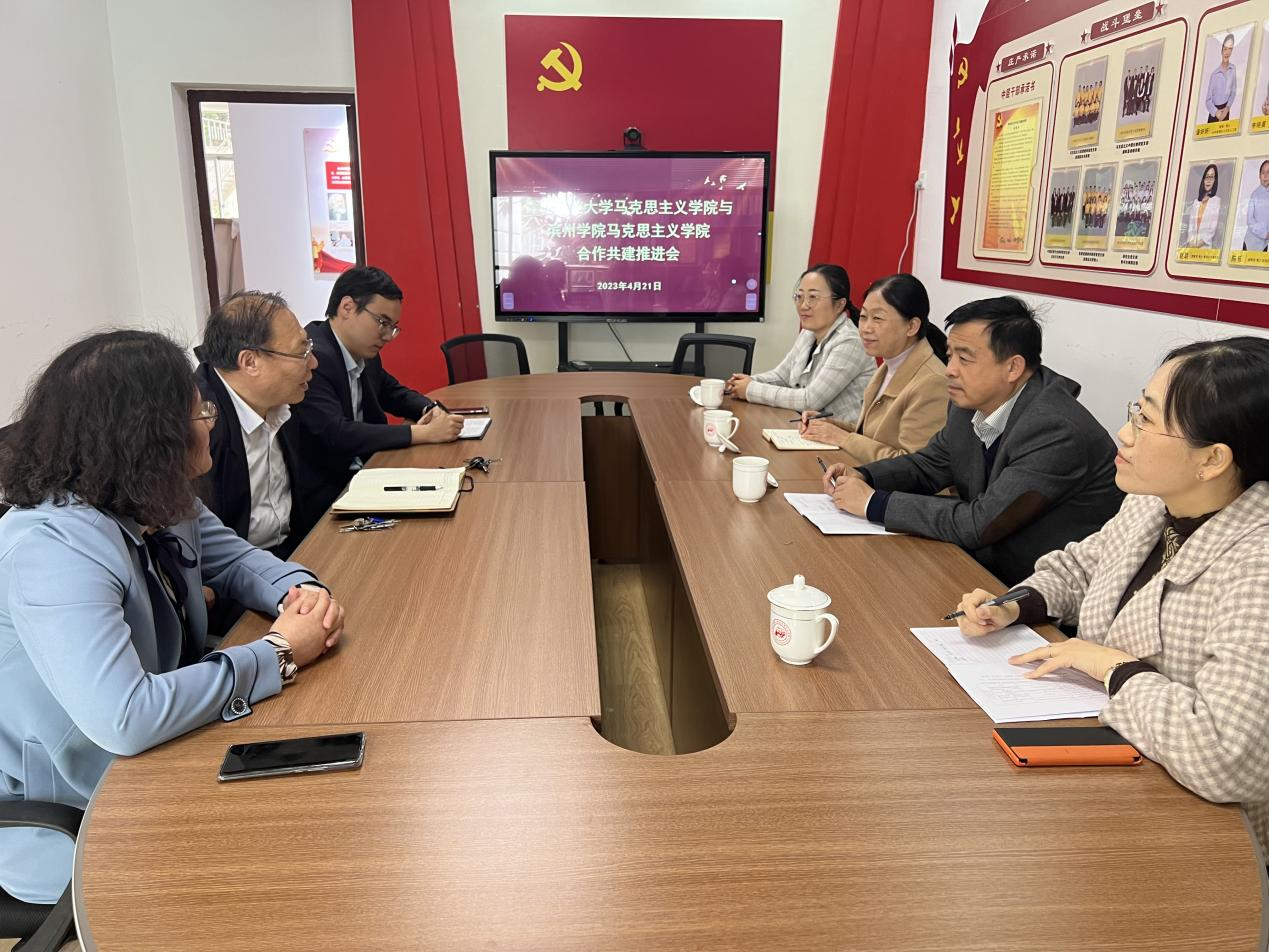 4月21日,学院召开太阳集团城娱8722与滨州学院太阳集团城娱8722合作共建推进会。滨州学院太阳集团城娱8722院长傅开梅一行5位领导老师到学院访问交流。院长曹胜,副院长郭江龙,党总支委员、中国近现代史教研室党支部书记兼教研室主任王建美参加了本次会议。