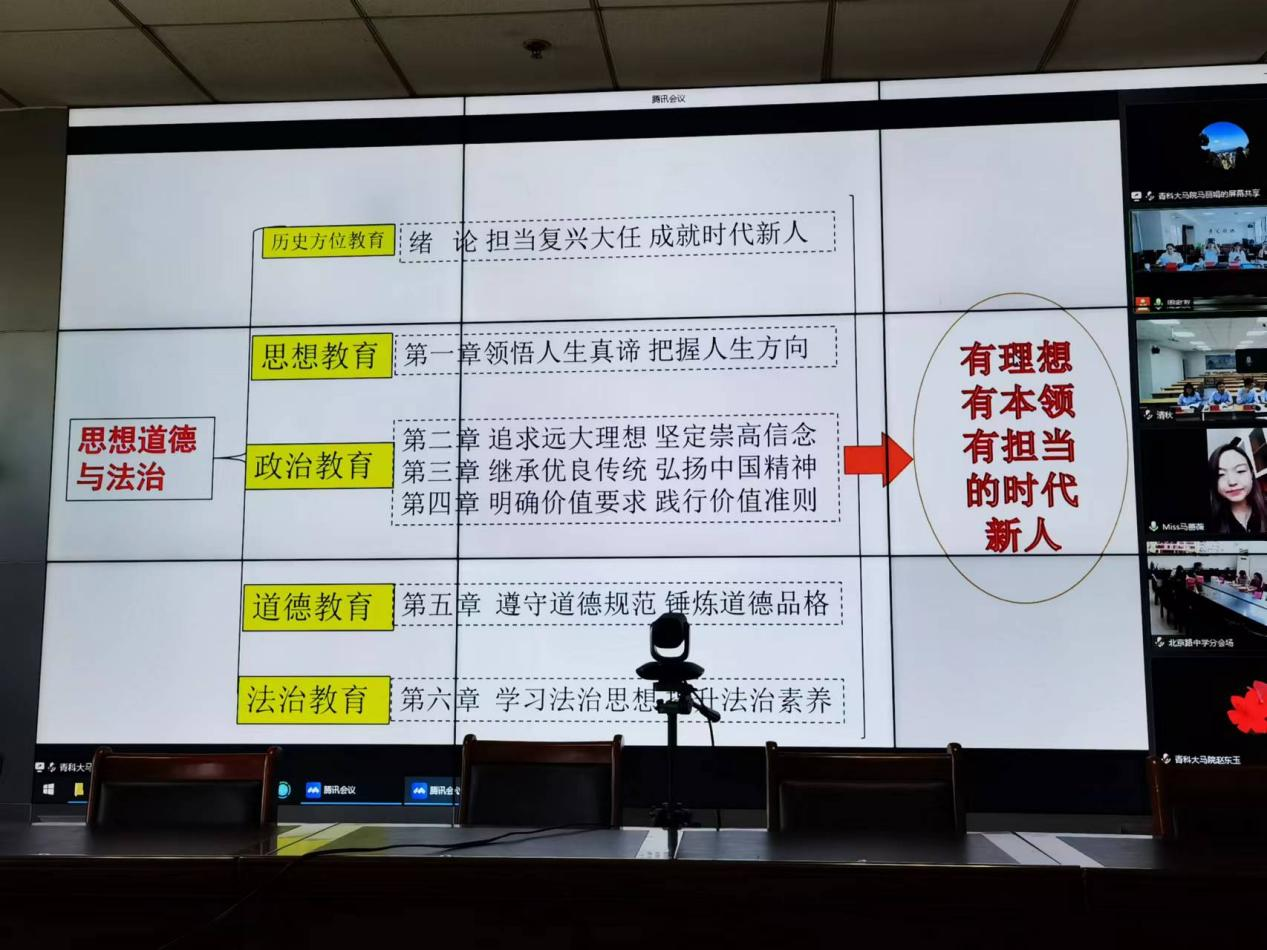 日照市东港区初中道德与法治学科“全区同备一节课”线上主题研讨会首先由分会场主备团队汇报备课成果。