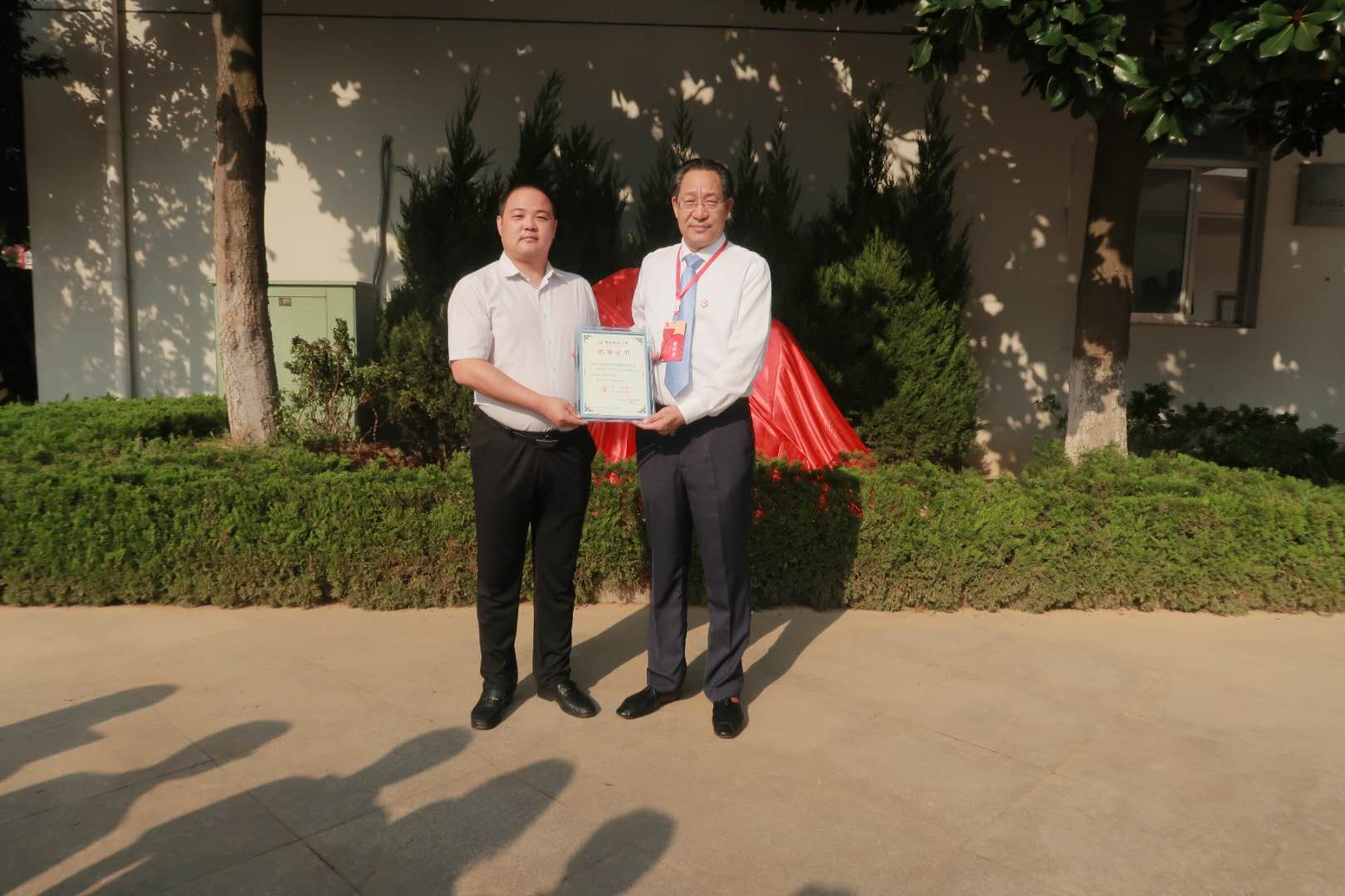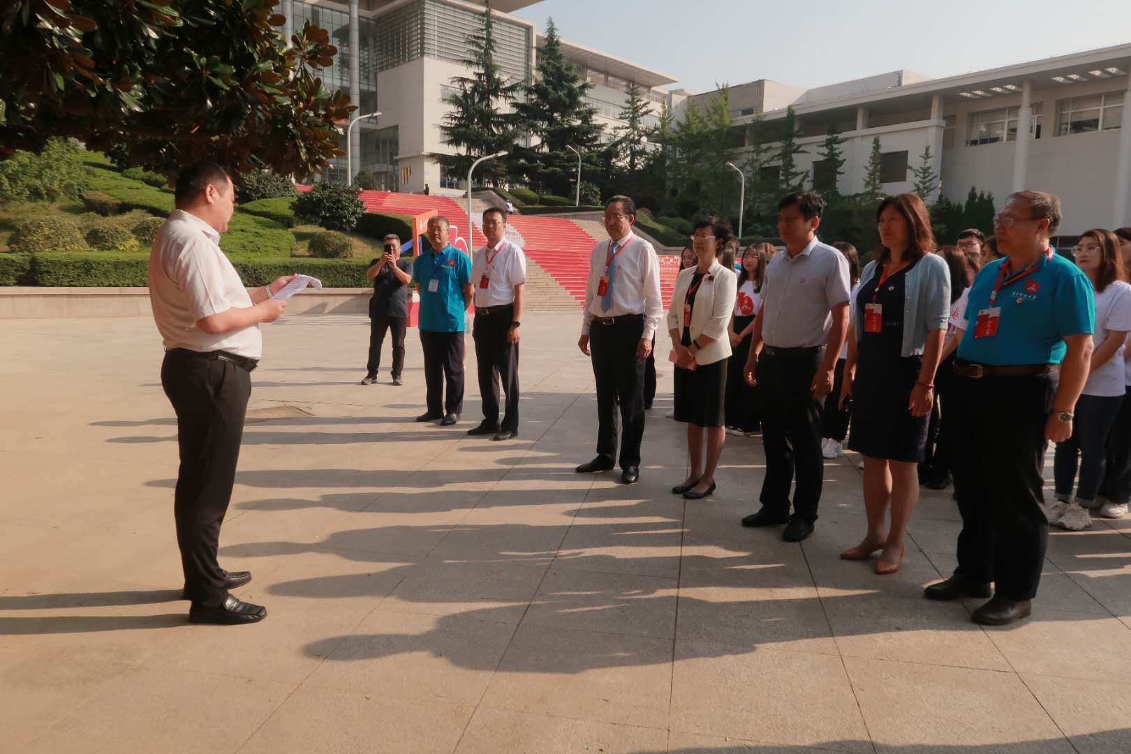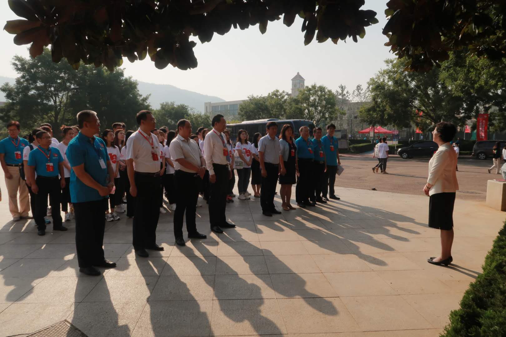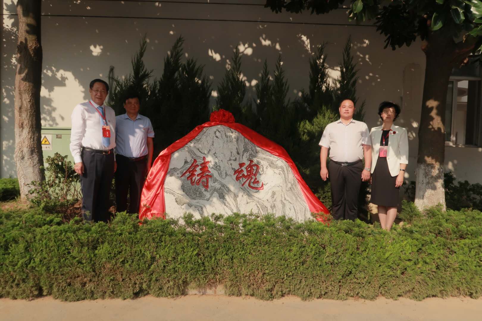 太阳集团网站8722党委副书记张淑华,党委常委、副校长韦殿华,山东城际轨道交通科技股份有限公司总经理张勇,泗水县委常委、组织部长、太阳集团网站8722校友秦明共同为“铸魂”校园景观石揭幕。