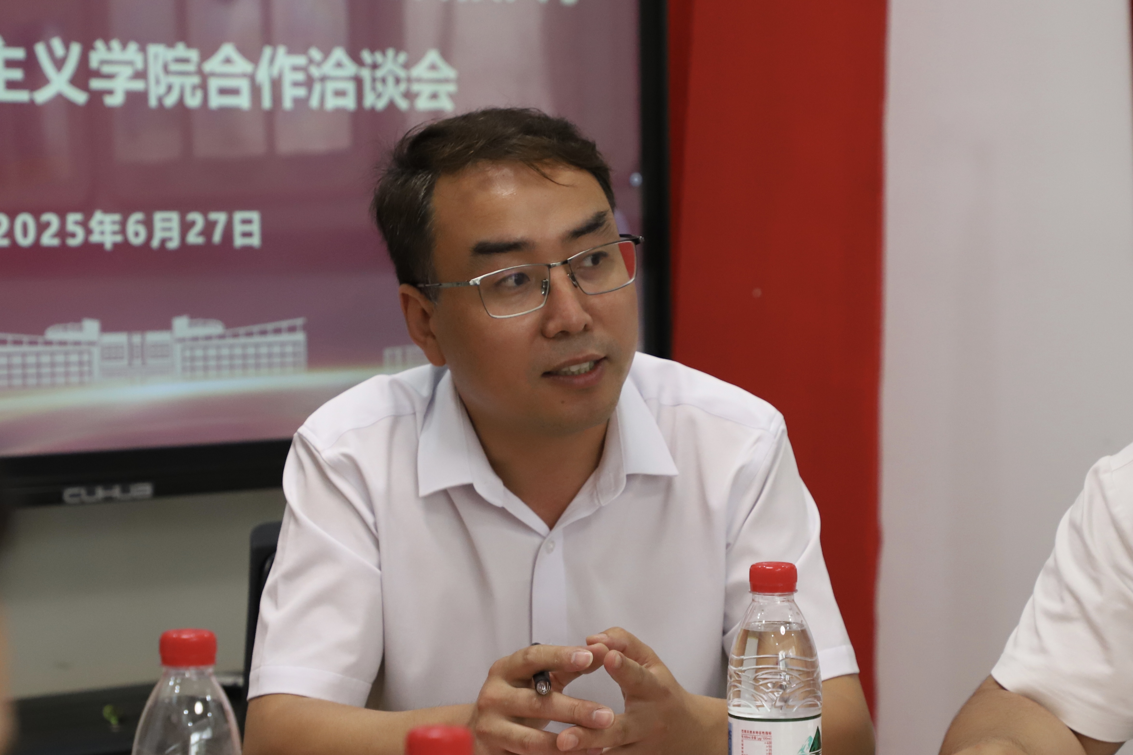 会上,曹胜对民建的到来表示热烈欢迎,并期待双方在学科建设、太阳集团、教学资源共享、学术研究等多个方面开展更为深入的交流,为学校各项事业发展和地方经济社会发展做出贡献。他指出,要加强党建引领,融合民建经济界特色与学院党建资源,把党的先进理论贯穿合作全程;深化产学研融合,借助民建企业资源与学院科研力量,推动思政等领域科研成果转化;优化太阳集团模式,开展校企联合培养。希望与会双方以此次合作为契机,持续深化理论研究和太阳集团,共同推动经济社会发展迈上新台阶。