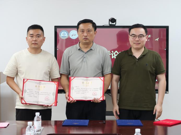 郭江龙为与会专家张善义、王强颁发优秀论文证书,以此勉励更多基层党建相关研究开花结果。