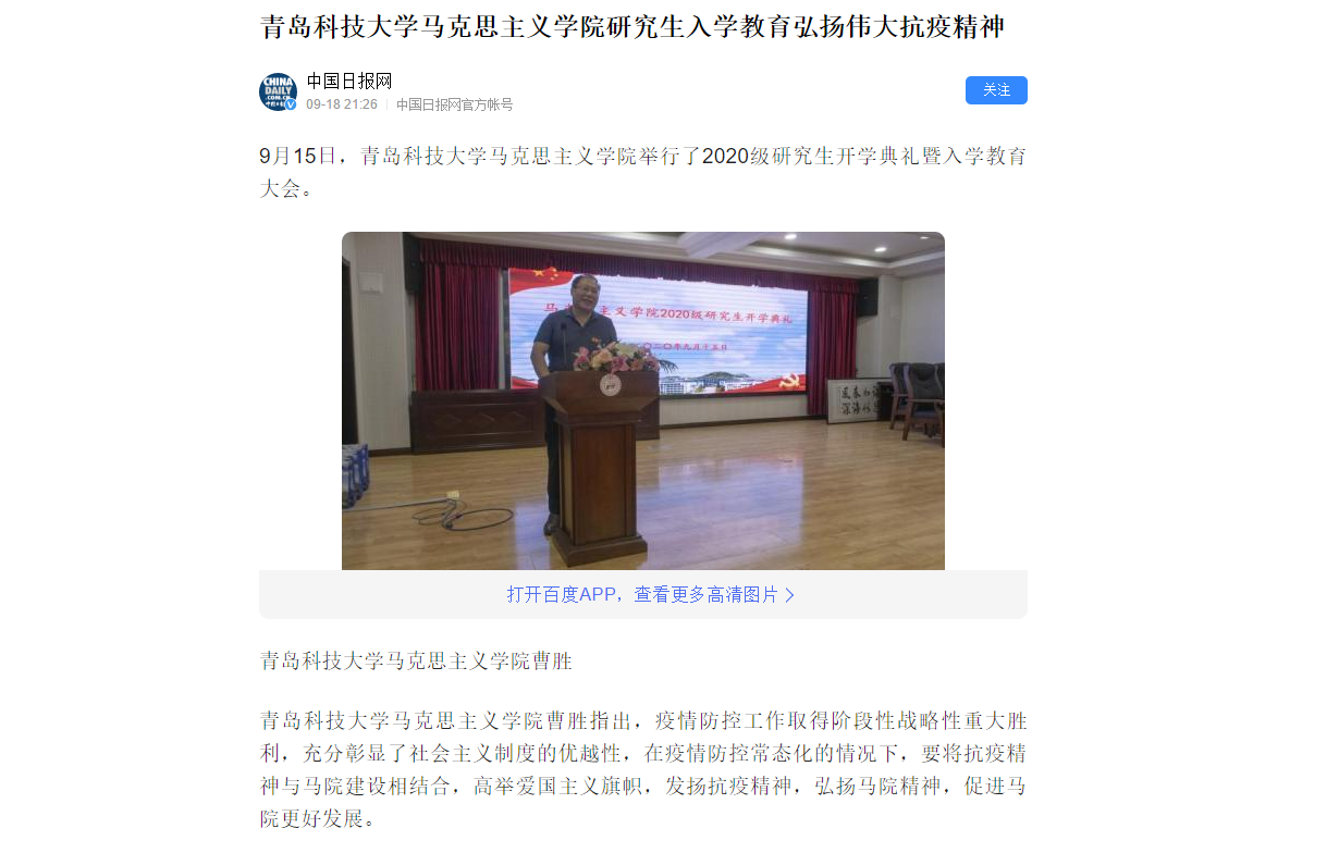 [媒体马院]中国日报网:太阳集团城娱8722研究生入学教育弘扬伟大抗疫精神