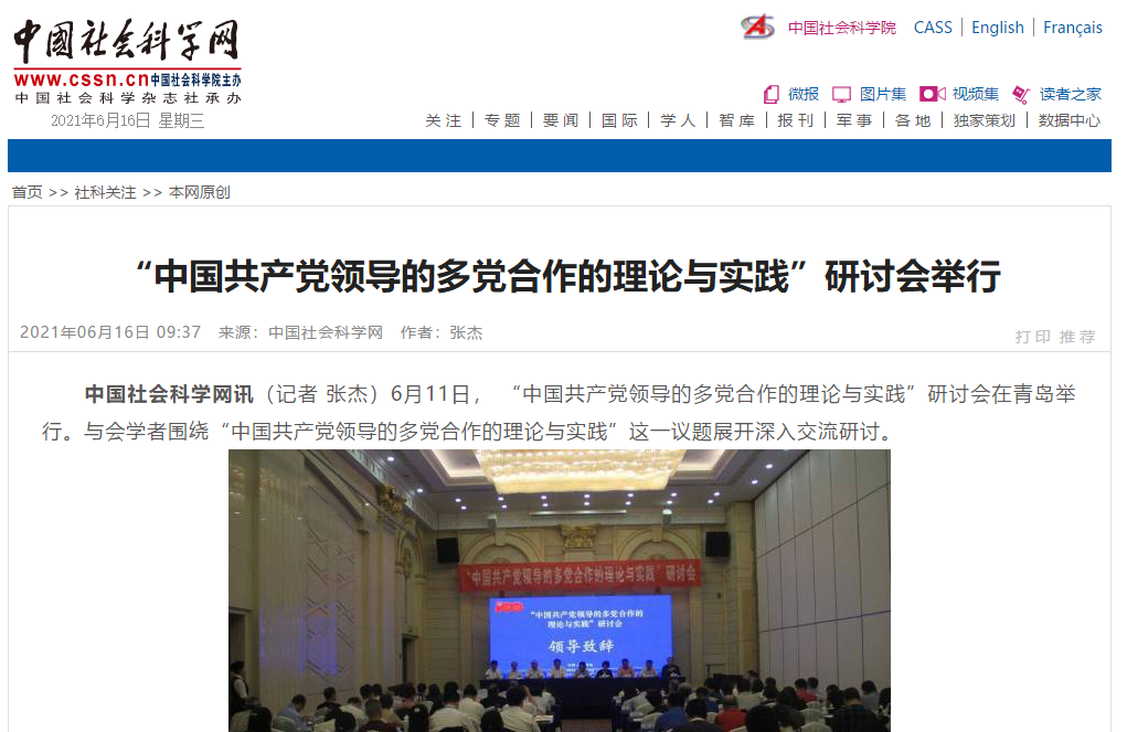 中国社会科学网讯(记者 张杰)6月11日, “中国共产党领导的多党合作的理论与实践”研讨会在青岛举行。与会学者围绕“中国共产党领导的多党合作的理论与实践”这一议题展开深入交流研讨。