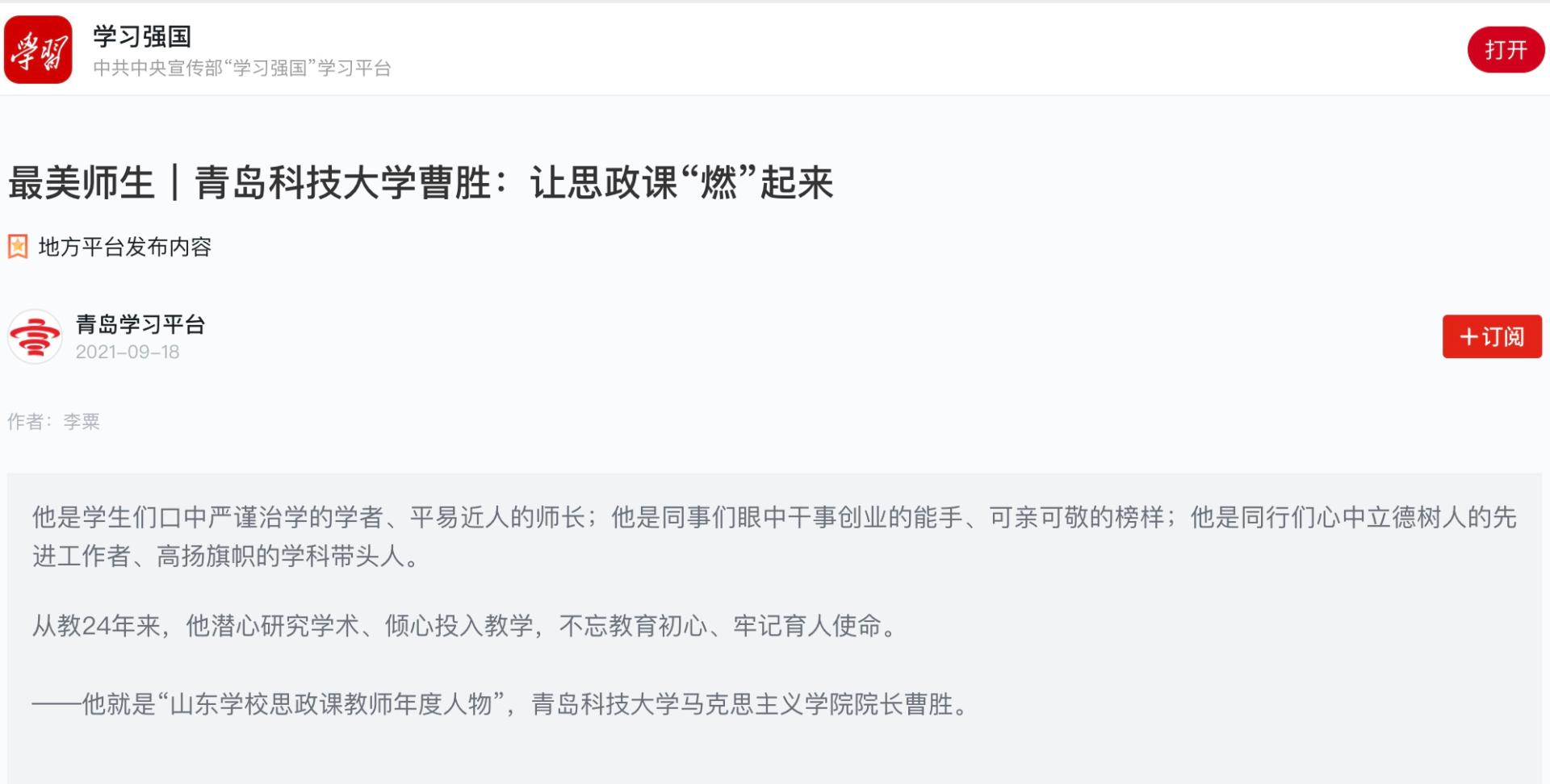 [媒体马院]学习强国:最美师生|太阳集团网站8722曹胜:让思政课“燃”起来