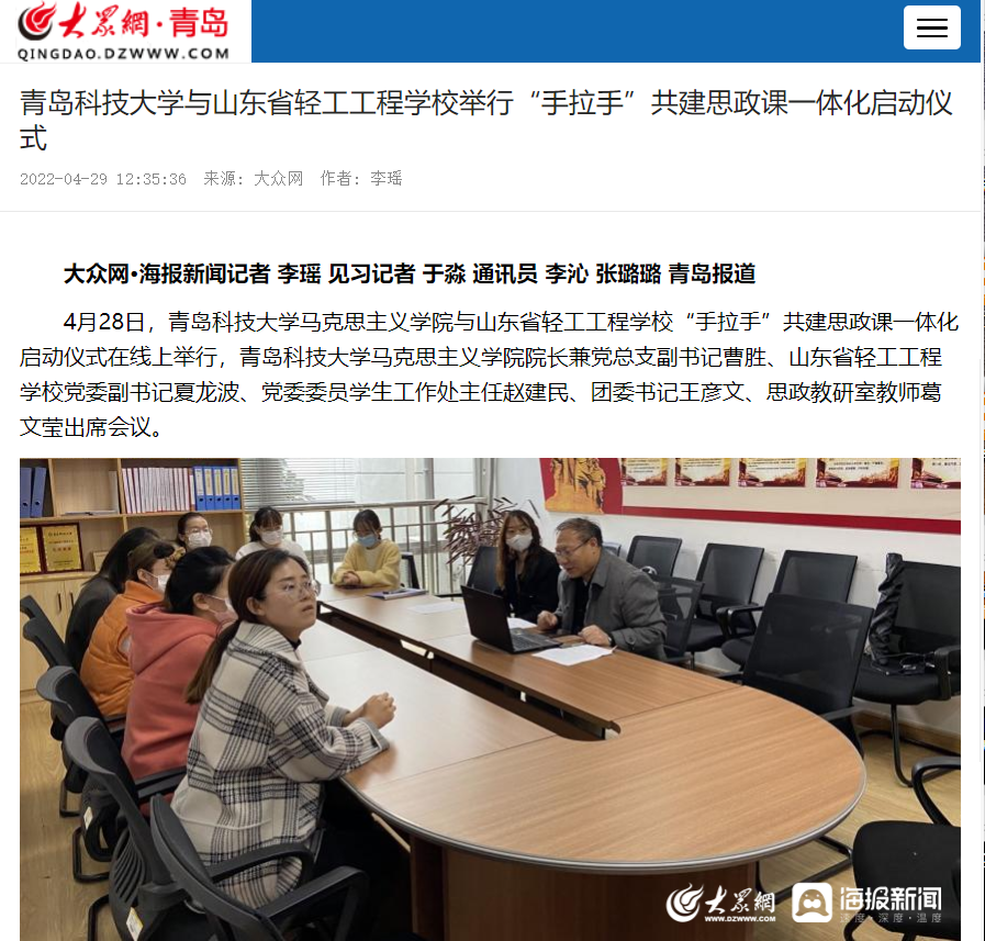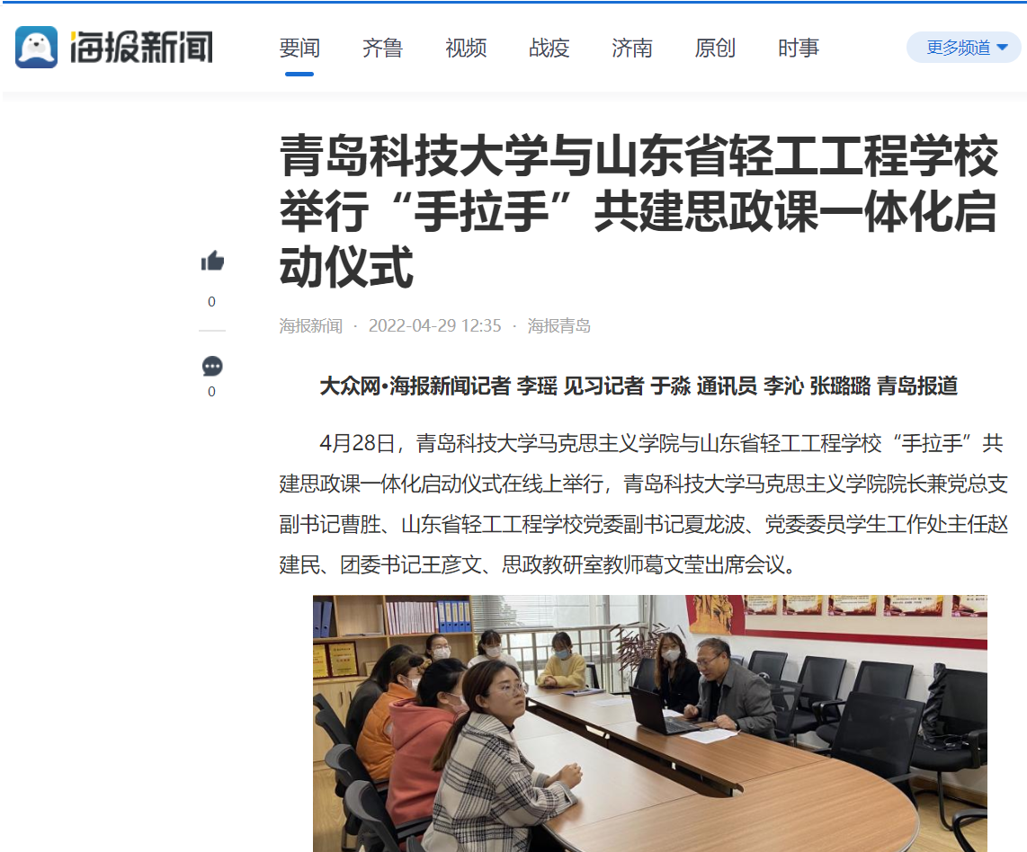 [媒体马院]大众网:太阳集团网站8722与山东省轻工工程学校举行“手拉手”共建思政课一体化启动仪式
