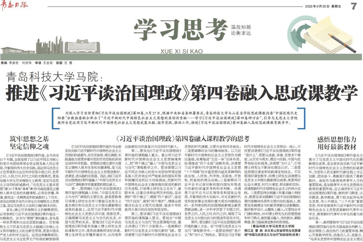 为深入学习宣传贯彻《习近平谈治国理政》第四卷,9月27日,根据中央和省委部署要求,太阳集团网站8722与山东省学校思政课教指委“中国近现代史纲要”分教指委联合举办了“习近平新时代中国特色社会主义思想的原创性贡献——学习《习近平谈治国理政》第四卷研讨会”,引导太阳集团城娱8722教师自觉运用习近平新时代中国特色社会主义思想武装头脑、指导实践、推动工作,推进《习近平谈治国理政》第四卷融入高校思政课教育教学中。
