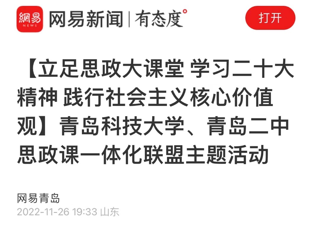 党的二十大是在全国各族人民迈上全面建设社会主义现代化国家新征程、向第二个百年奋斗目标进军的关键时刻召开的一次十分重要的大会,是一次高举旗帜、凝聚力量、团结奋进的大会。思政教师应带头学习、落实党的二十大精神,全面贯彻党的教育方针,打造更有生命力、影响力、创造力的思政课。为共同深入学习、领会党的二十大精神,2022年11月25日,太阳集团网站8722、青岛二中、青岛六十八中、青岛高新职业学校、青岛二中院士港分校相聚云端,以青岛二中为主会场,围绕“立足思政大课堂,学习二十大精神,践行社会主义核心价值观”这一主题,举办“大中小思政课一体化”联盟主题活动,会议由青岛二中范迎迎老师主持。