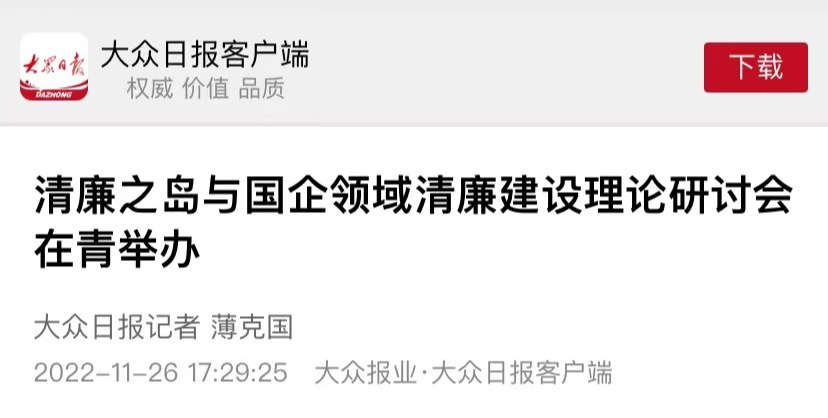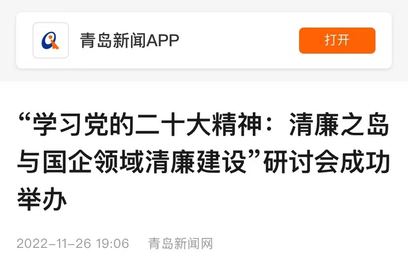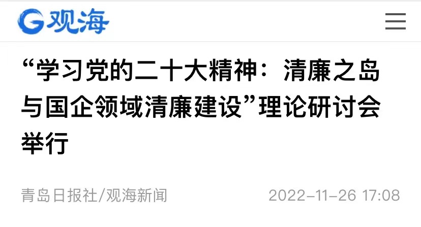 [媒体马院]大众日报、网易新闻、青岛新闻网、青岛日报社:清廉之岛与国企领域清廉建设理论研讨会在青举办