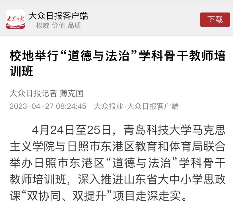 [媒体马院]大众日报:校地举行“道德与法治”学科骨干教师培训班