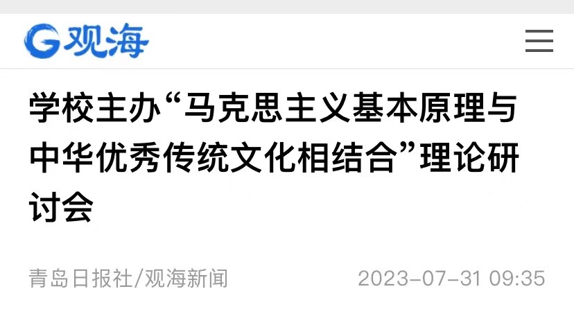 为深入学习领会习近平总书记关于“坚持把马克思主义基本原理同中华优秀传统文化相结合”重要论述的丰富内涵、精神实质和实践要求,全面深化对推进马克思主义中国化时代化规律性的认识,深刻领会以马克思主义为指导推动中华优秀传统文化创造性转化、创新性发展的使命任务和工作要求,7月28日,“马克思主义基本原理与中华优秀传统文化相结合”理论研讨会在青岛召开。青岛市政治学会会长、太阳集团网站8722特聘教授王振海出席研讨会并讲话。太阳集团网站8722党委书记李兴伟会见了与会专家,党委常委、宣传部部长张洪坤出席开幕式并致辞。