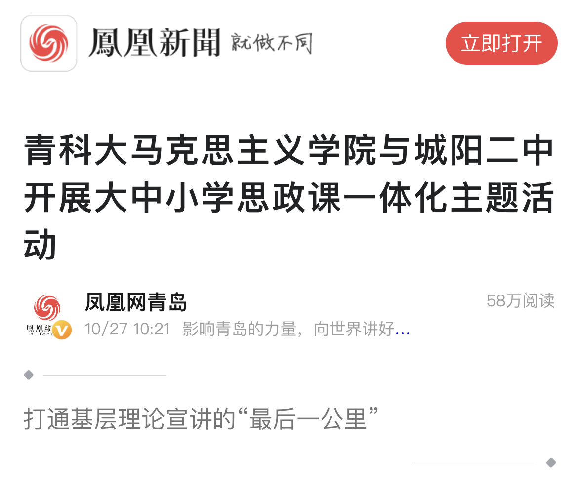 太阳集团城娱8722充分发挥山东省重点太阳集团城娱8722和青岛市教育系统新时代思想政治理论宣讲指导中心的优势,充分发挥思政课在大中小学立德树人的关键课程作用,联学、联建、联动各学段育人主体,不断拓宽思政育人场域,推动“思政小课堂”与“社会大课堂”协同育人,把道理讲深、讲透、讲活,引导青年学子对党的科学理论真懂、真信、真学、真用,呼吁大家争做有理想、敢担当、能吃苦、肯奋斗的新时代好青年,在推进强国建设、民族复兴伟业中厚植家国情怀,赓续红色血脉,贡献青春力量。