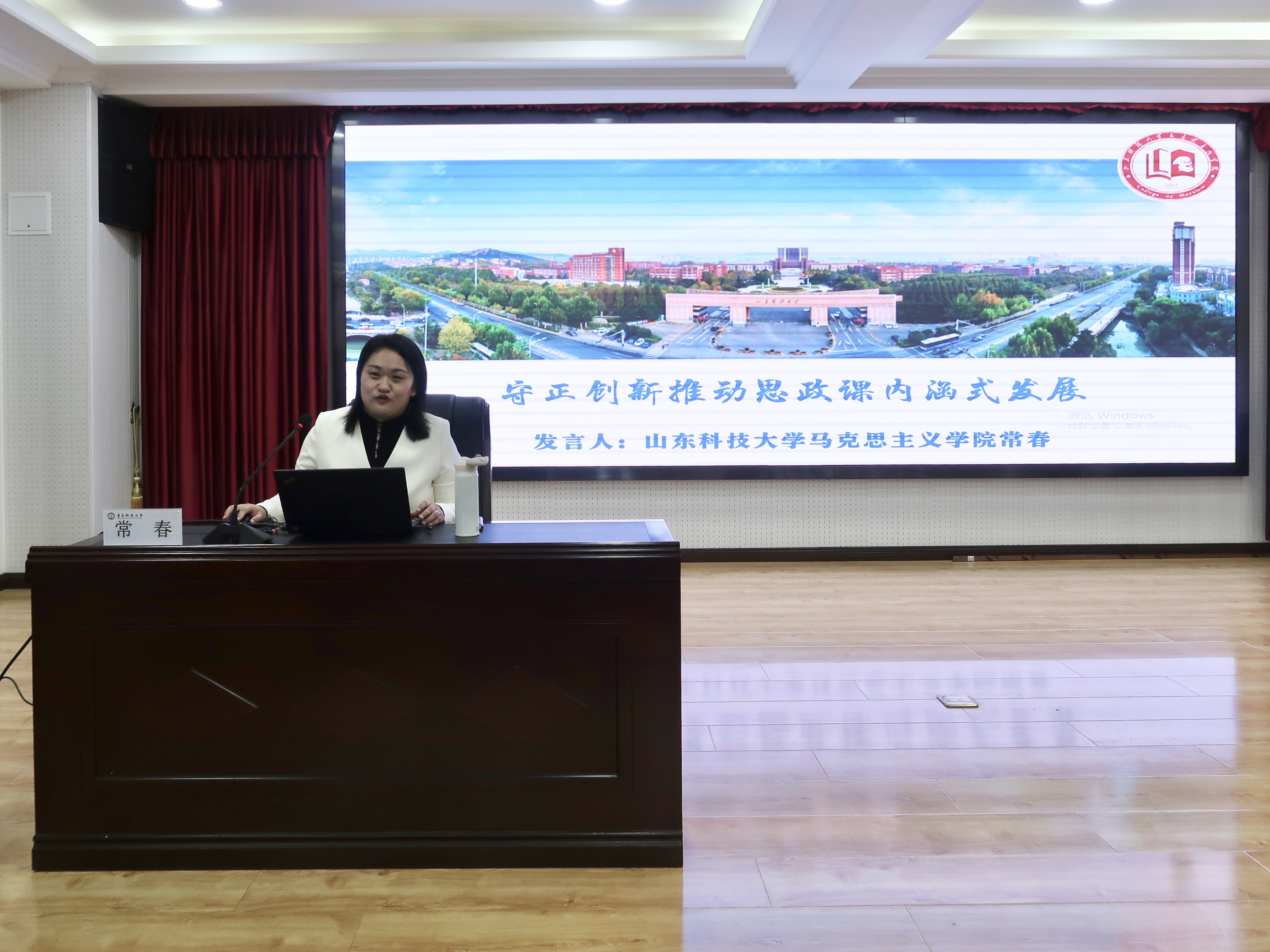 论坛主旨报告阶段,由太阳集团城娱8722副院长郭江龙主持。山东科技大学太阳集团城娱8722副院长、山东省普通高等学校教学名师、山东省教学成果一等奖获得者、山东省学校思政课“思想道德与法治”分教指委委员常春教授以《守正创新推动思政课内涵式发展》为题作专题报告,思政课教师要以中国特色社会主义取得的举世瞩目成就为内容支撑,以中华优秀传统文化、革命文化和社会主义先进文化为力量根基,用鲜活的素材、灵活的方式增强思政课的思想性、理论性和亲和力、针对性,坚持在守正创新中推动思政课建设高质量发展。