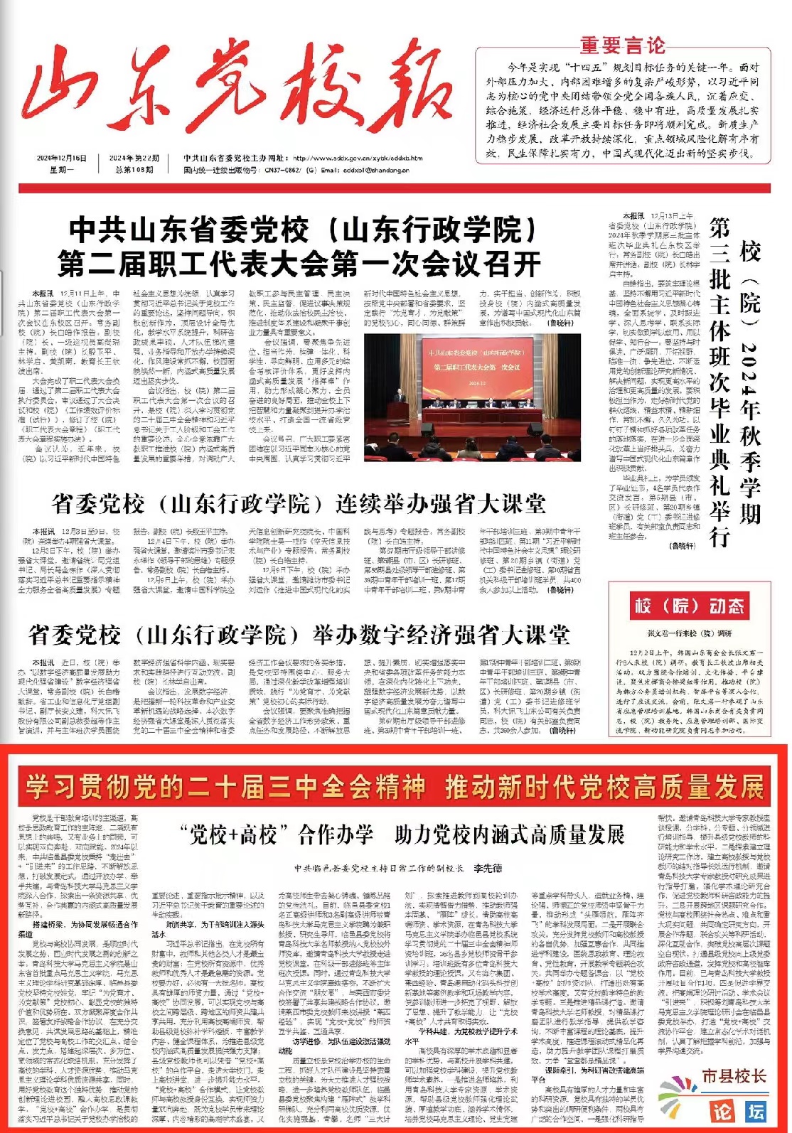 山东党校报:“党校+高校”合作办学 助力党校内涵式高质量发展