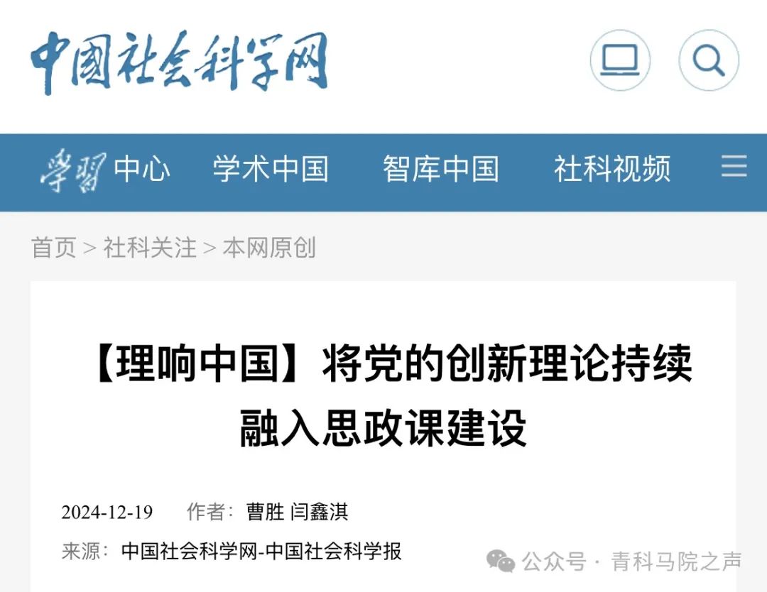 中国社会科学网:“曹胜 闫鑫淇——将党的创新理论持续融入思政课建设”