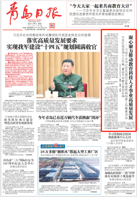 青岛日报:凝心聚力推动教育科技人才事业高质量发展