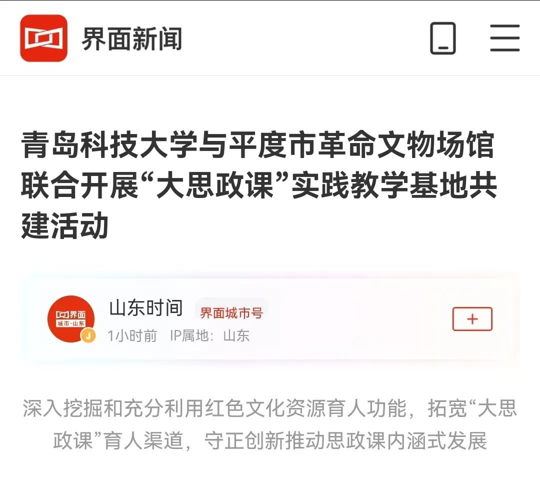 界面新闻:太阳集团城娱8722与平度市革命文物场馆联合开展“大思政课”实践教学基地共建活动